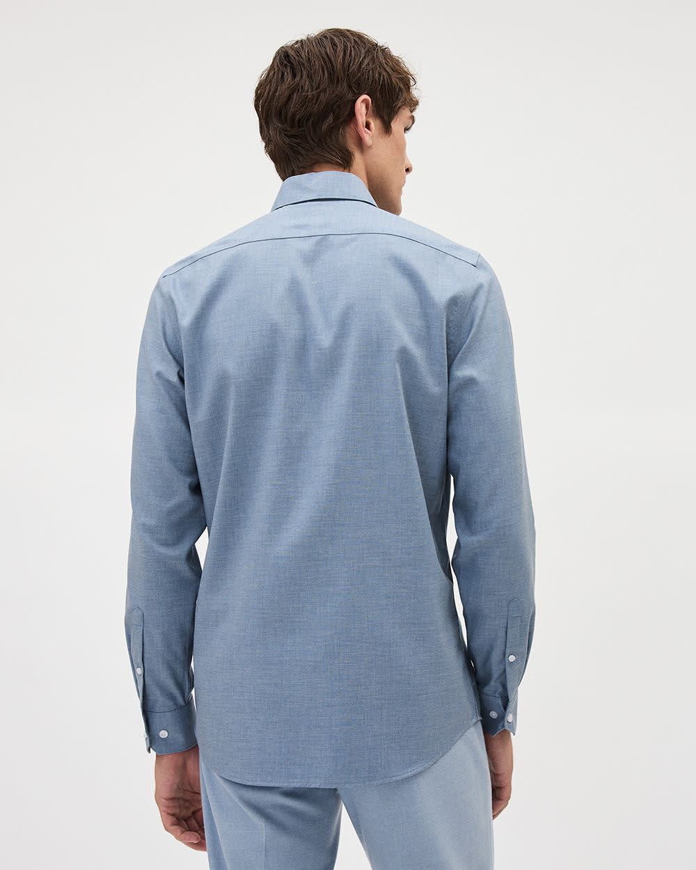 Conçue dans un coton chiné bleu, cette chemise à coupe ajustée est aussi confortable qu'élégante ; une pièce parfaite pour le quotidien.