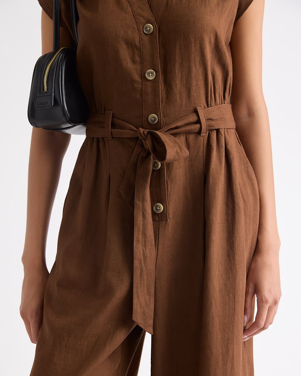 Cette adorable combinaison sans manches dotée d'une jambe large est la définition de confort. Conçue dans un léger mélange de lin, cette pièce est idéale pour vos prochaines vacances au soleil.