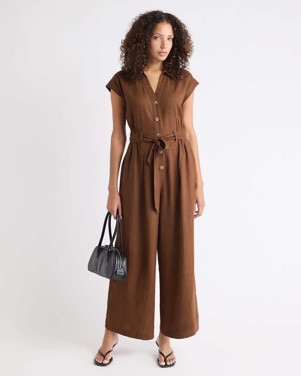 Combinaison en Mélange de Lin Sans Manches à Jambe Large