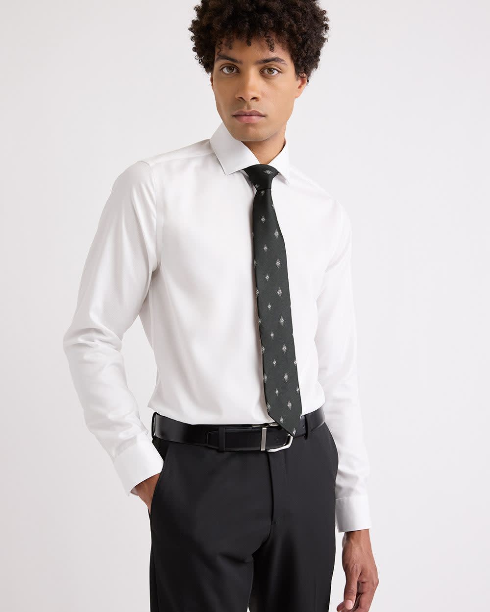 Rehaussez votre look avec cette cravate à coupe large en soie décorée d'un unique motif tissé qui ajoute de la texture au style.