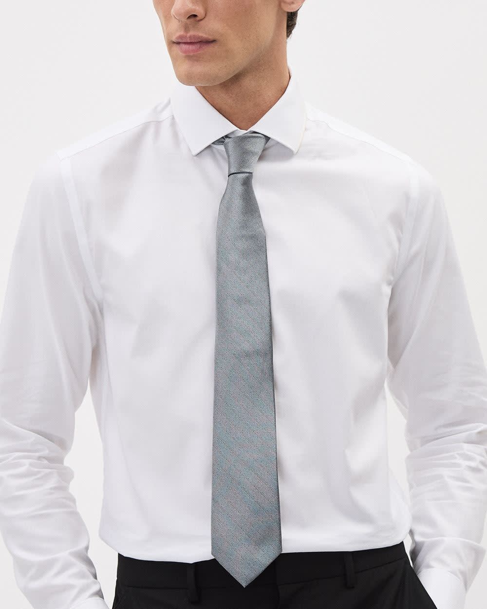 Rehaussez votre look avec cette cravate à coupe régulière en soie grise au fini texturé.