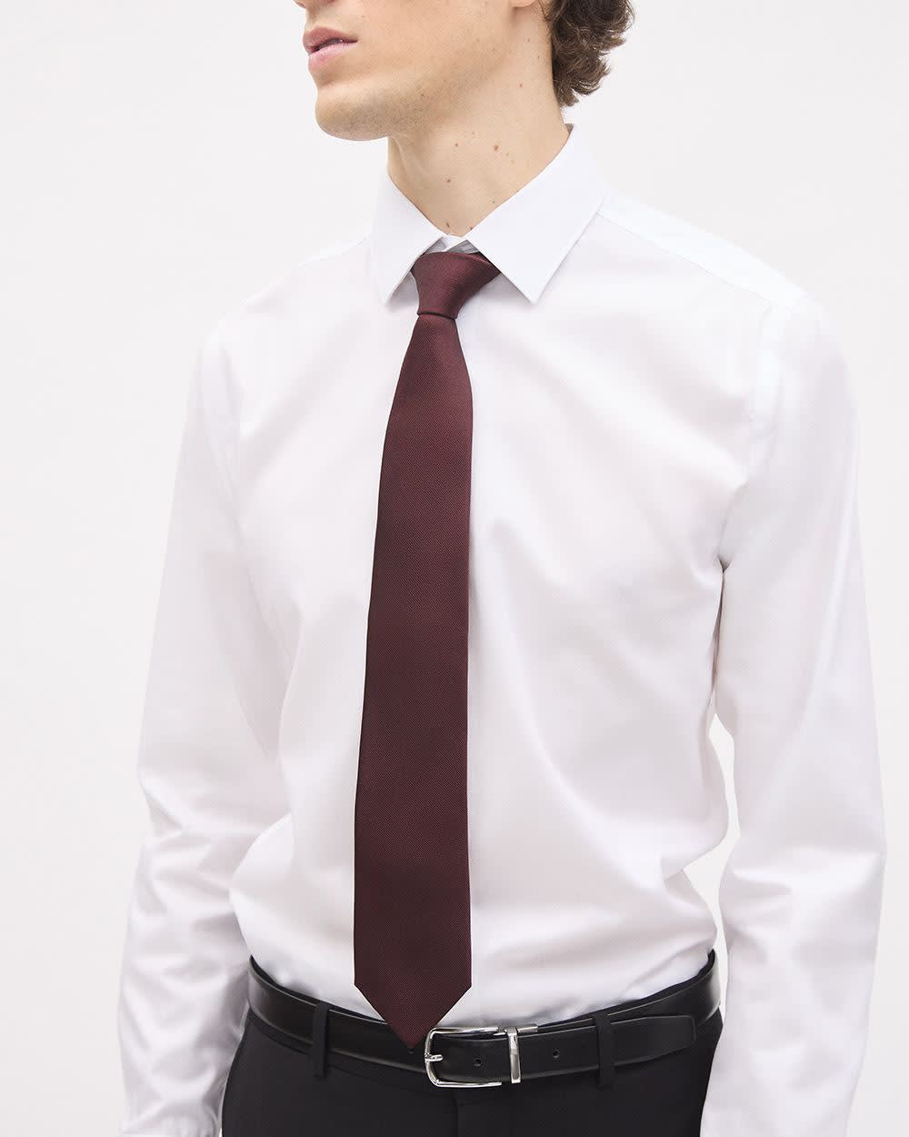 Rehaussez votre look avec cette cravate régulière bourgogne entièrement conçue en soie.