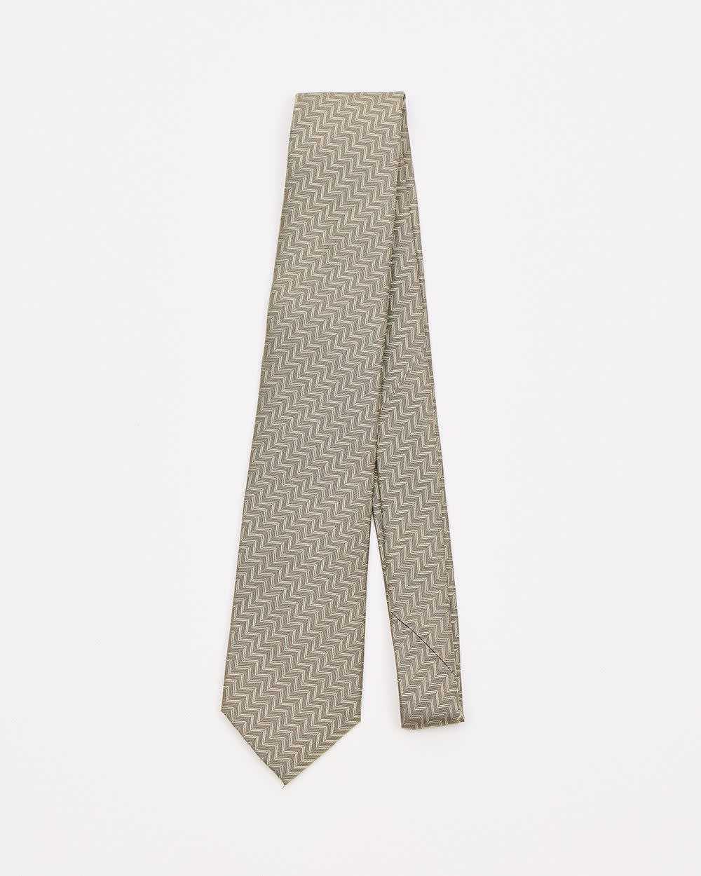 Rehaussez votre look avec cette cravate à coupe régulière en soie verte décorée d'un motif zigzag.