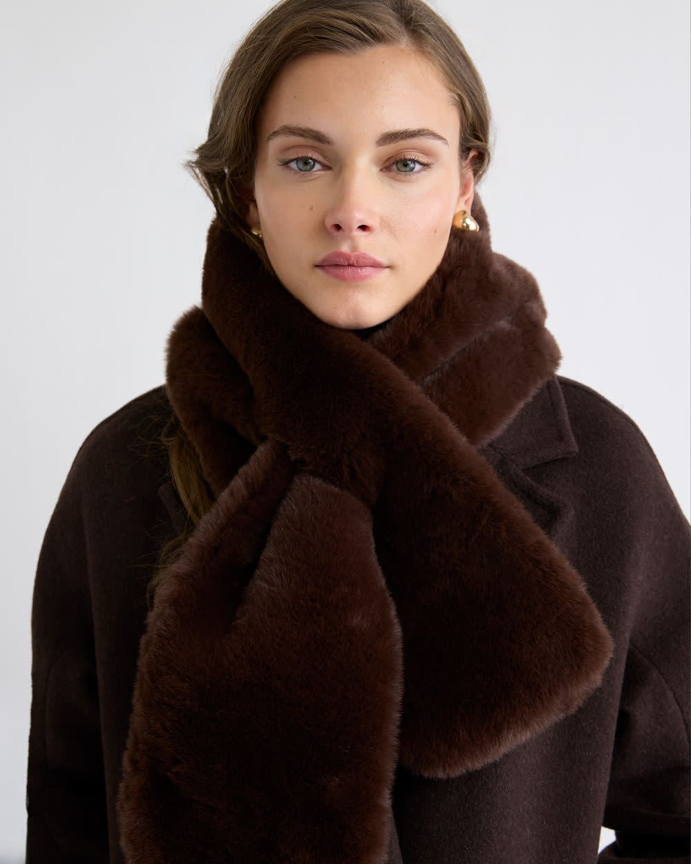 Élevez votre style hivernal avec ce foulard en fausse fourrure. Doux et irrésistiblement confortable, il se drape élégamment sur vos épaules pour ajouter une touche de chaleur et de glamour à votre style, de jour comme de soir.