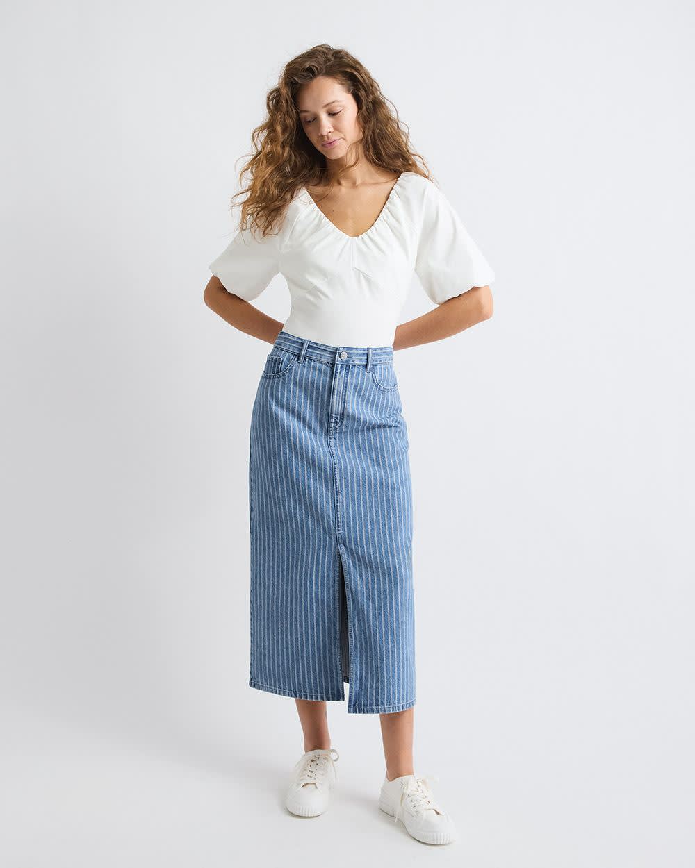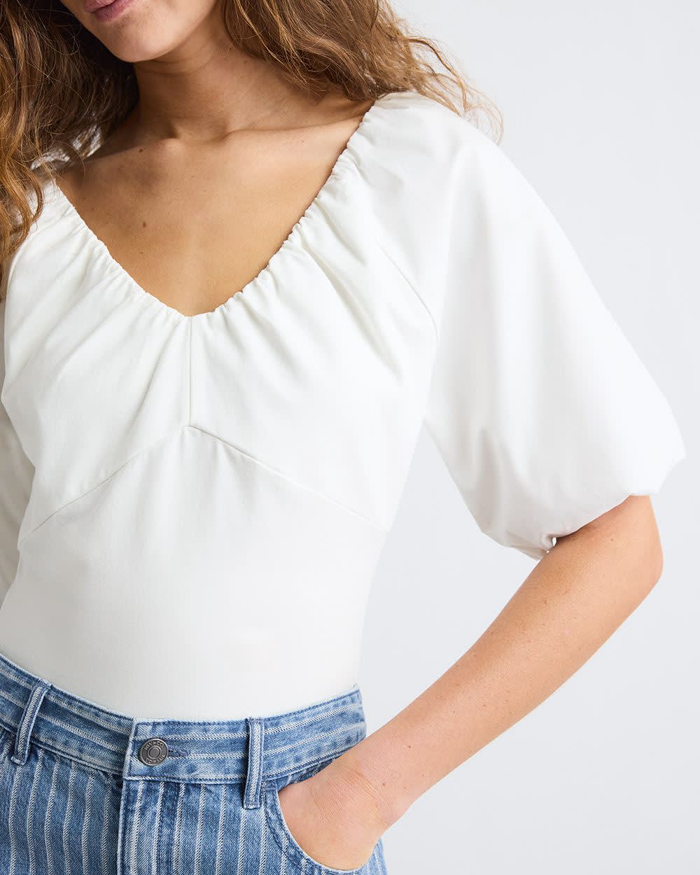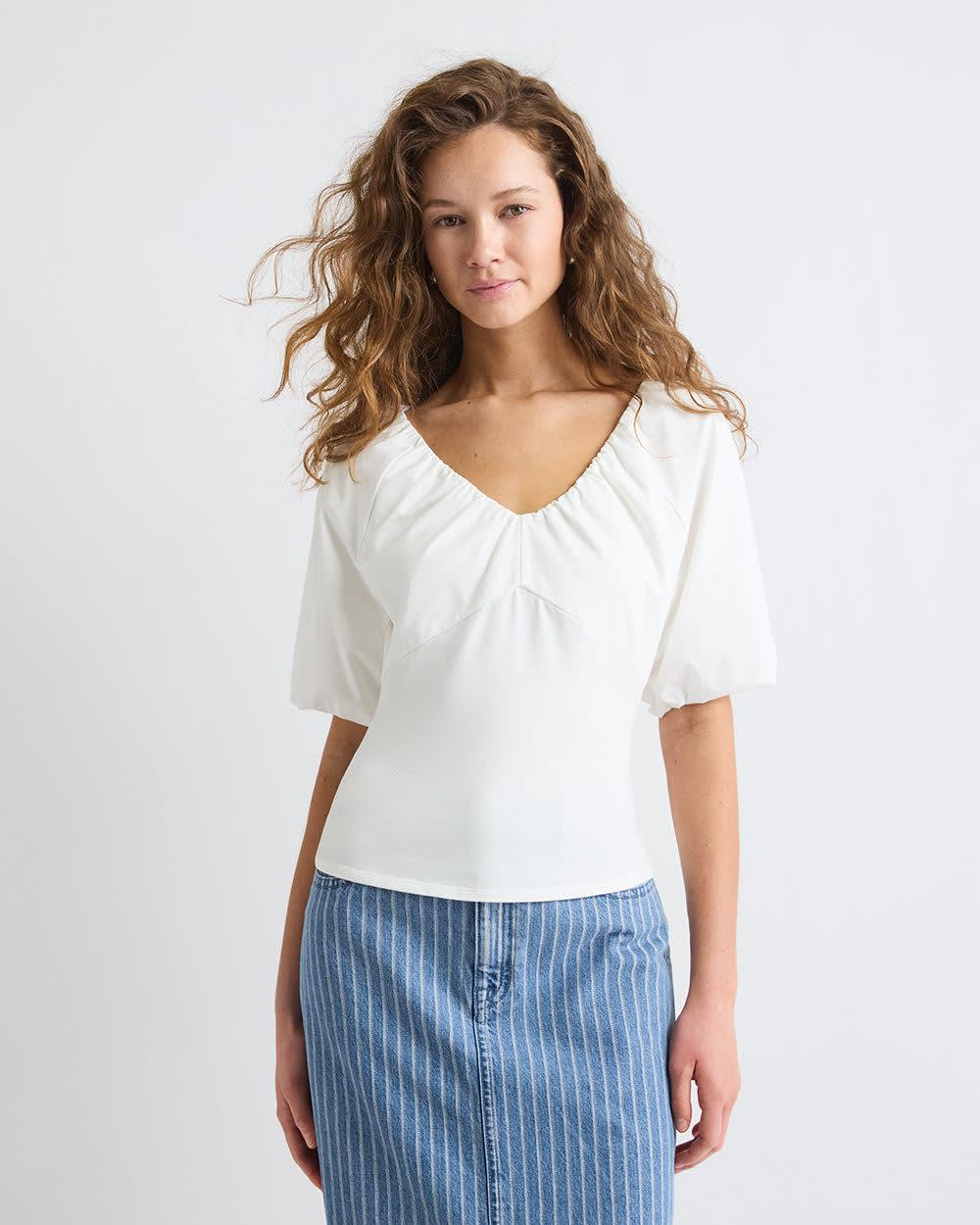 On adore ce superbe haut doté de jolies manches bouffantes. Conçu avec une coupe empire qui avantage la silhouette, ce haut bimatière est une pièce idéale pour le quotidien.