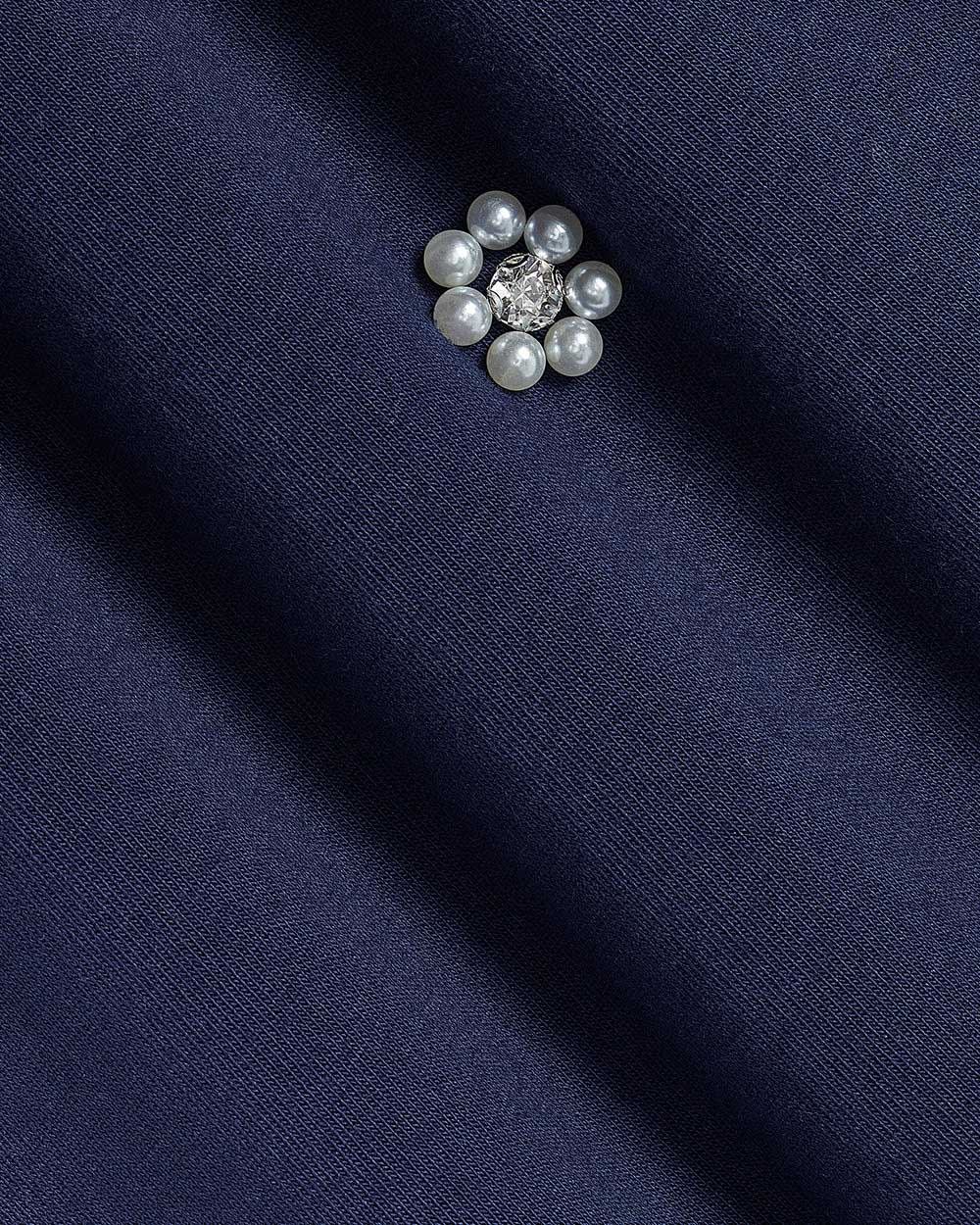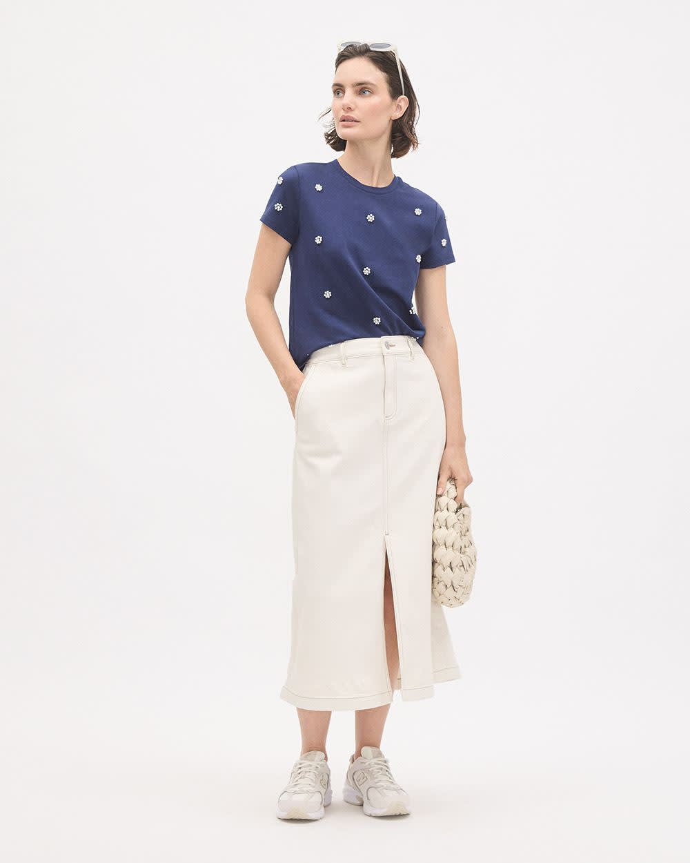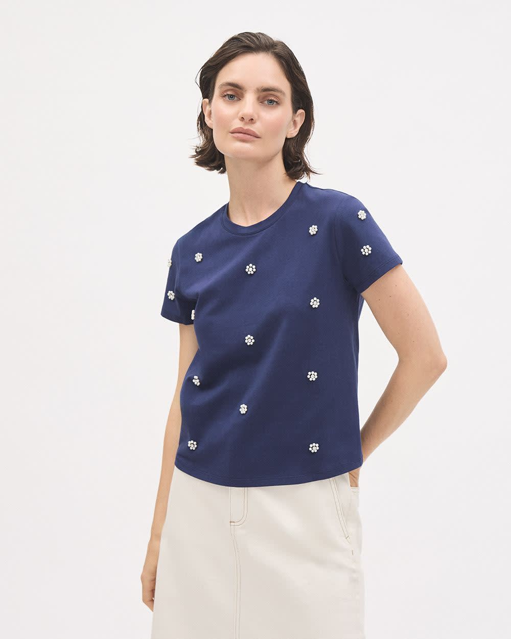 Haut à Manches Courtes et Col Rond avec Fleurs en Billes