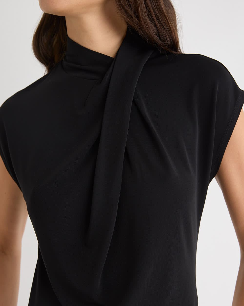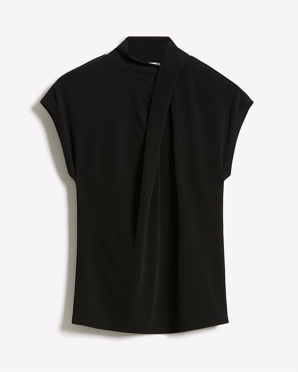 Simple, mais super élégant, ce haut à manches très courtes doté d'un unique col montant drapé à détail croisé est exactement ce qu'il vous faut pour rehausser votre style.