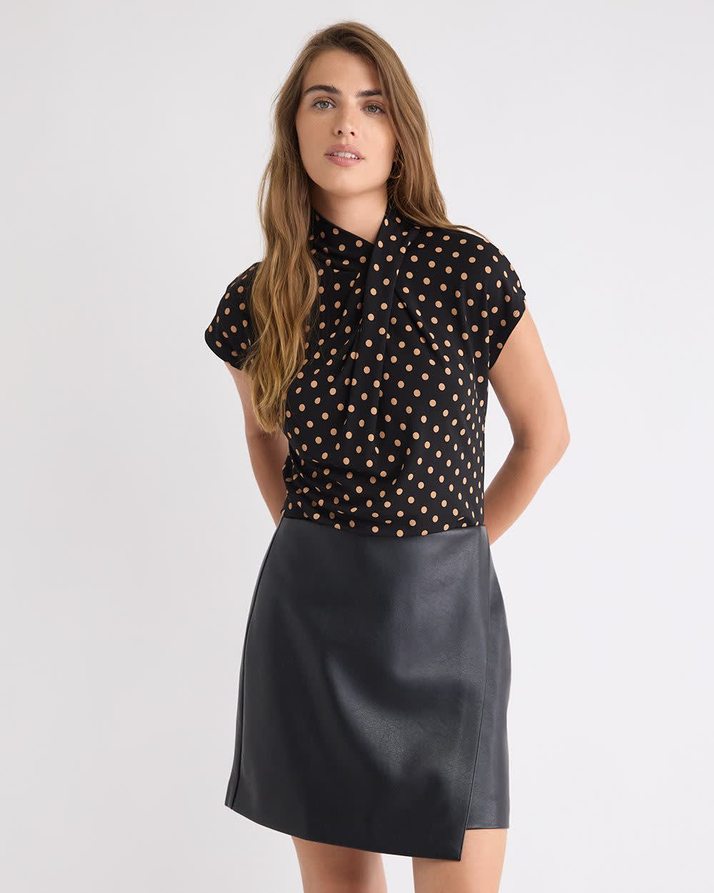 Simple, mais super élégant, ce haut à manches très courtes doté d'un unique col montant drapé à détail croisé est exactement ce qu'il vous faut pour rehausser votre style.