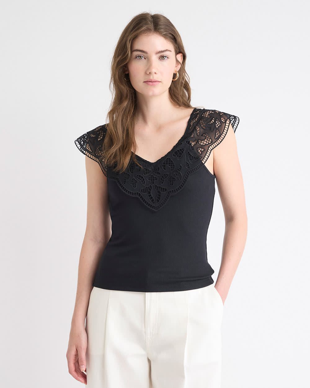 Cet adorable haut doté de manches courtes à volants est une superbe pièce pour rehausser votre style de tous les jours. Portez-le simplement avec votre bas en denim favori et vous serez prête en moins de deux pour un souper ou un brunch entre amis.
