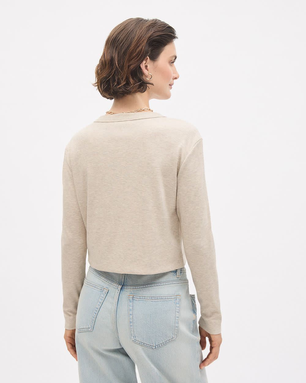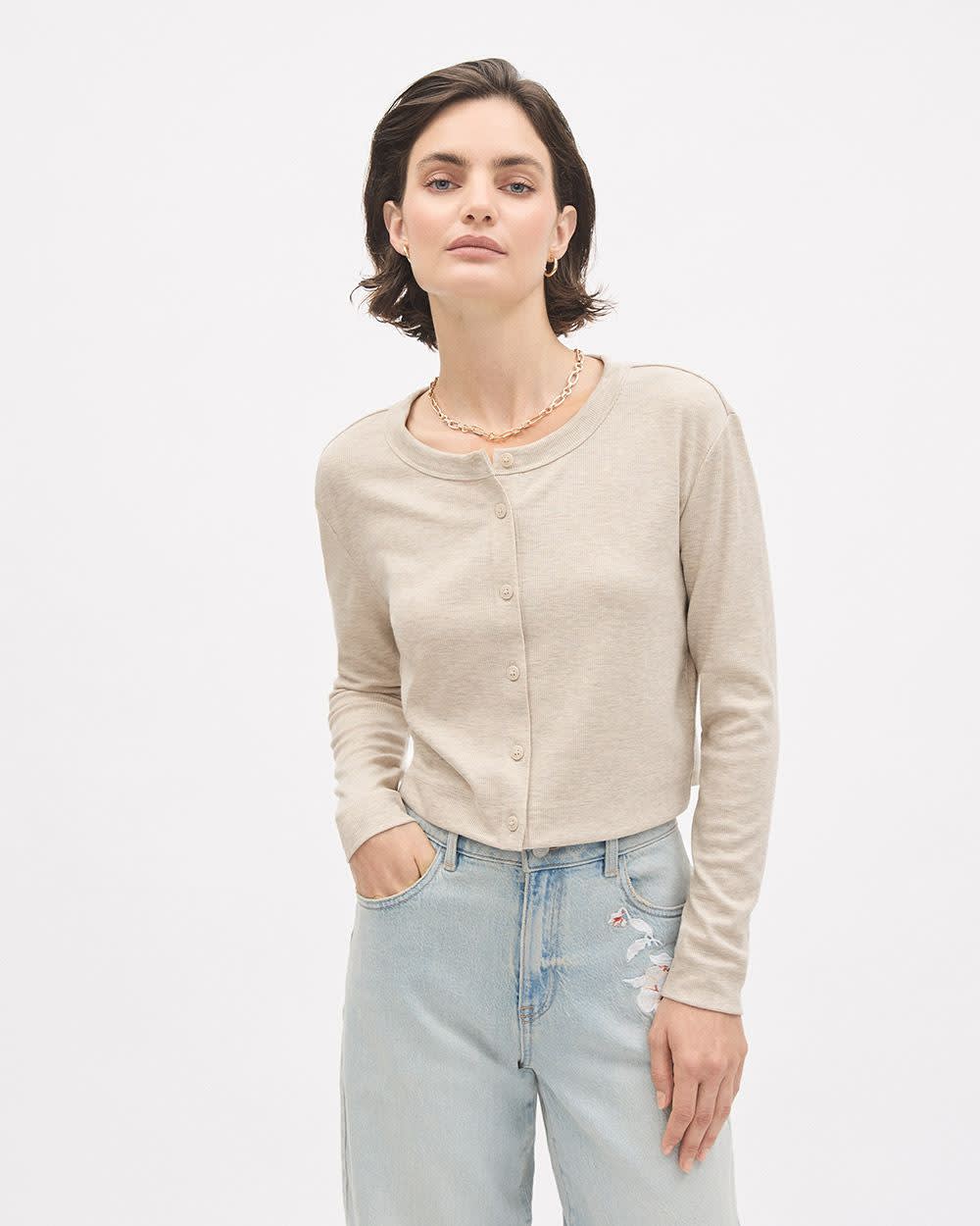 Ce haut boutonné uni conçu dans un doux tricot côtelé est parfait pour le quotidien, que vous le portiez avec des jeans ou une jolie jupe.