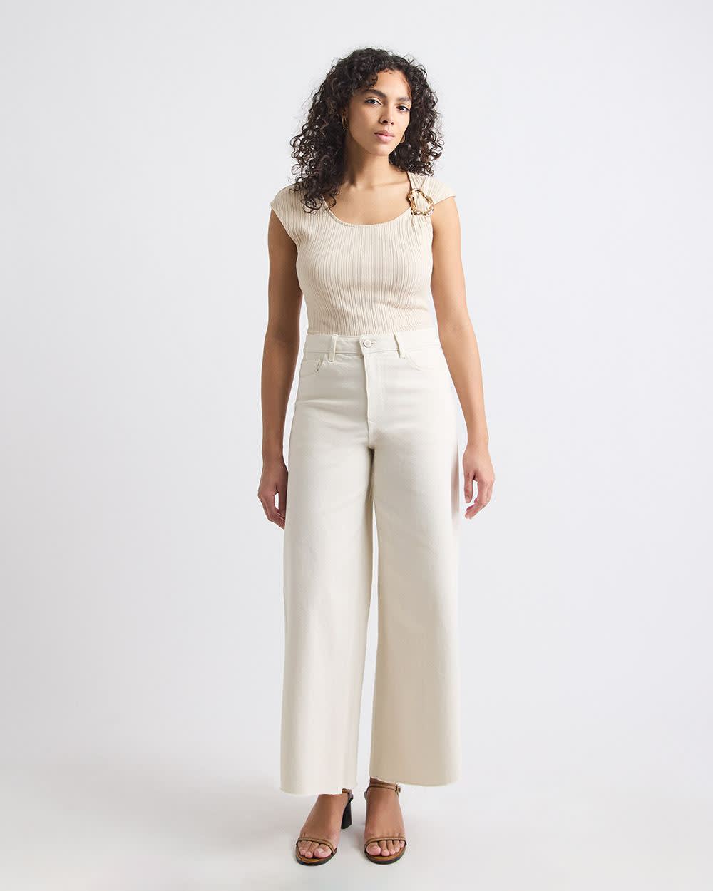 Haut Sans Manches et Col Dégagé avec Anneau en Métal