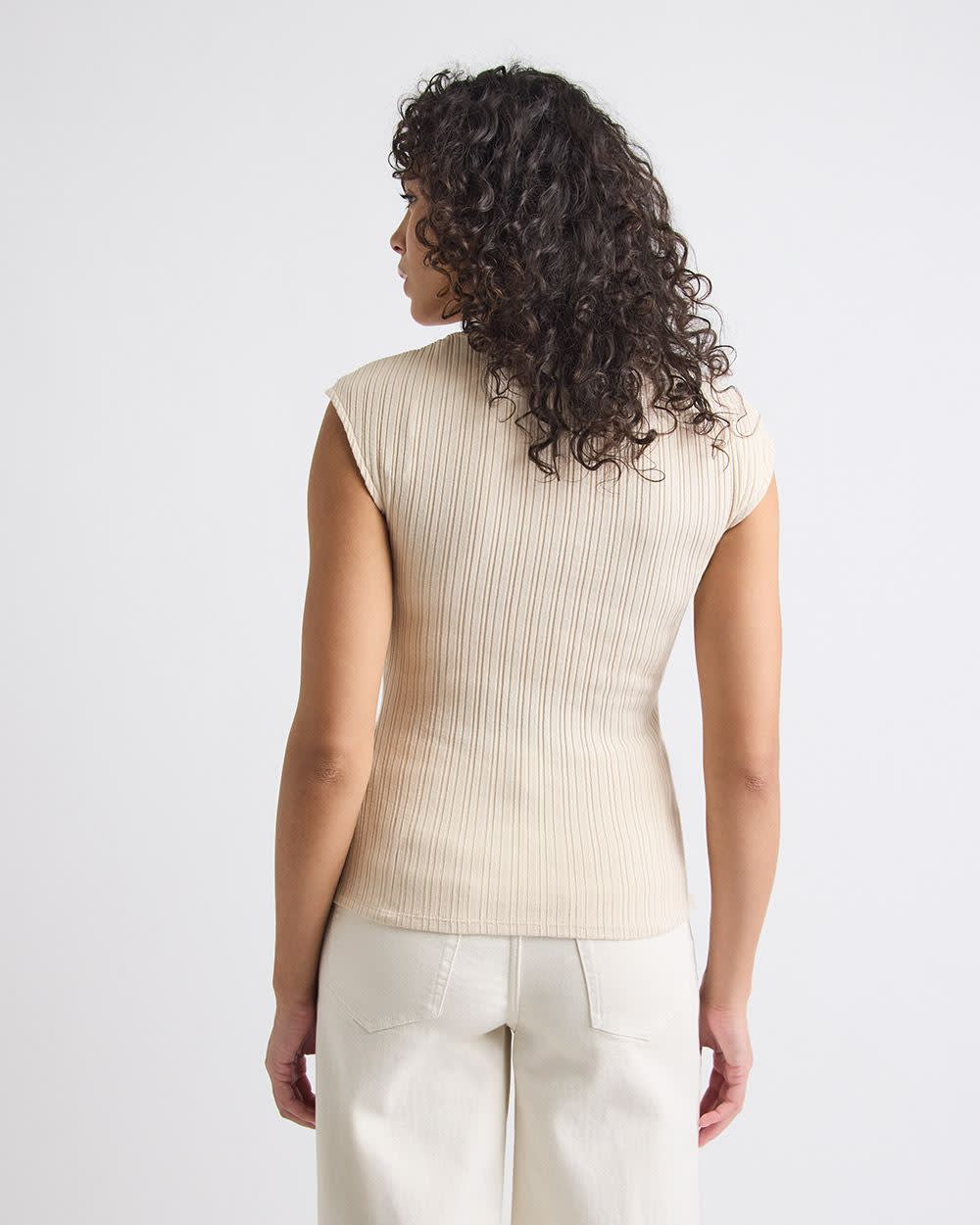 On adore ce mignon haut côtelé. Doté d'un féminin col dégagé décoré d'un joli anneau en métal lui procurant un style unique, ce haut beige à la fois simple et élégant.
