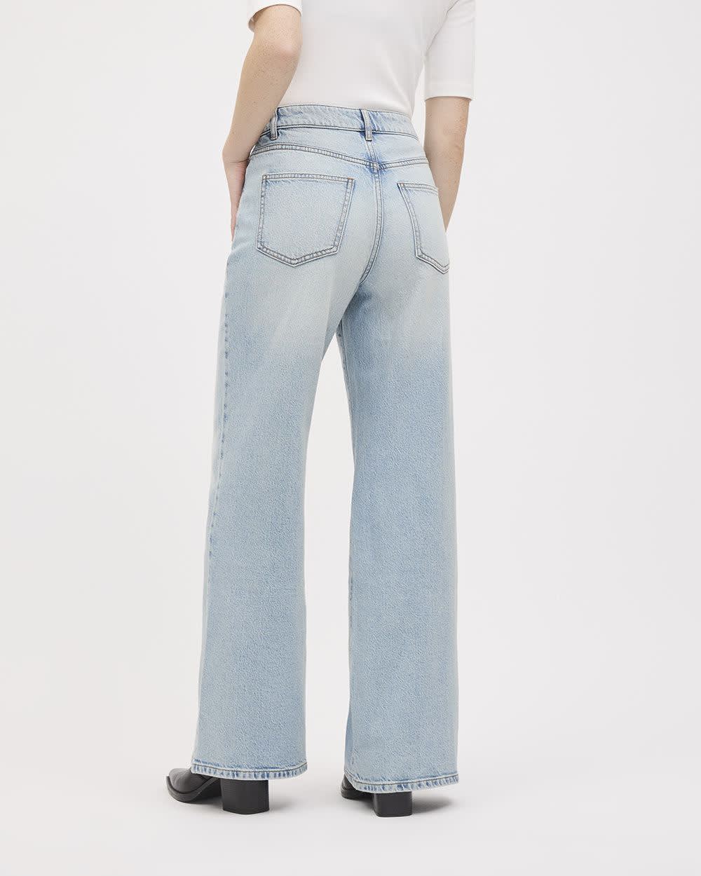 Un pantalon en denim pâle est toujours utile à un moment ou un autre. Doté d'une confortable taille haute et d'une jambe large qui saura se démarquer, ce jean est sans aucun doute un essentiel à ajouter à votre garde-robe pour les moments où vous déciderez que le pâle l'emporte.