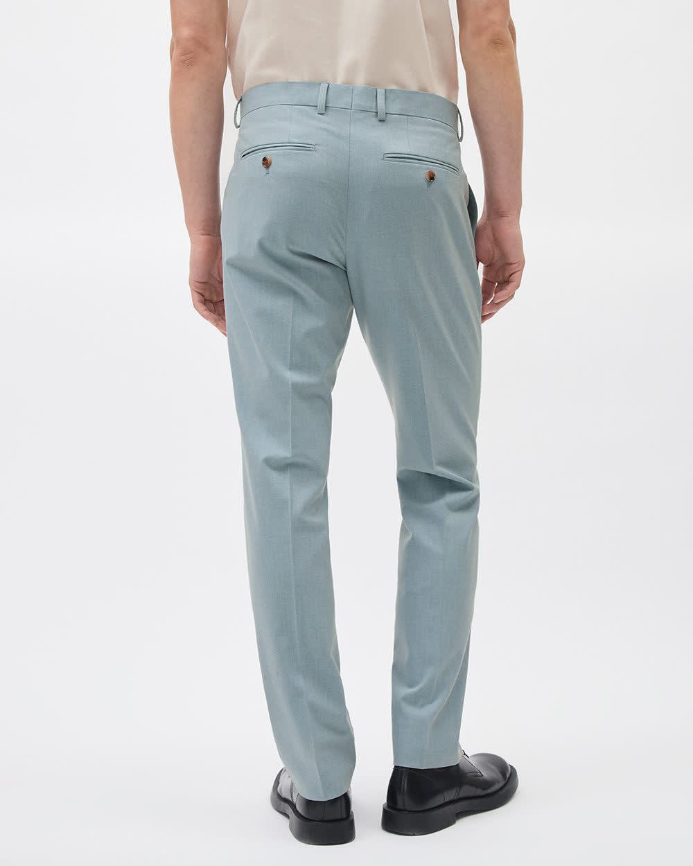 Accueillez le printemps avec fraîcheur et confort avec ce superbe pantalon de complet bleu. Vous adorerez son tissu extensible et sa coupe ajustée. Veston assorti disponible.