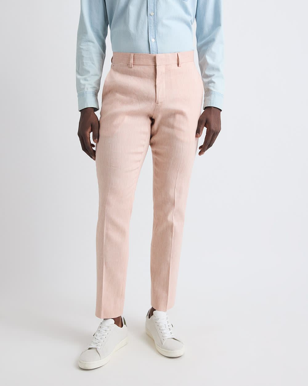Super polyvalent, on adore ce pantalon conçu dans un tissu léger en mélange de lin, ce qui en fait la pièce idéale pour les journées chaudes et ensoleillées. Un essentiel à ajouter à votre garde-robe de vacances. Veston assorti disponible.