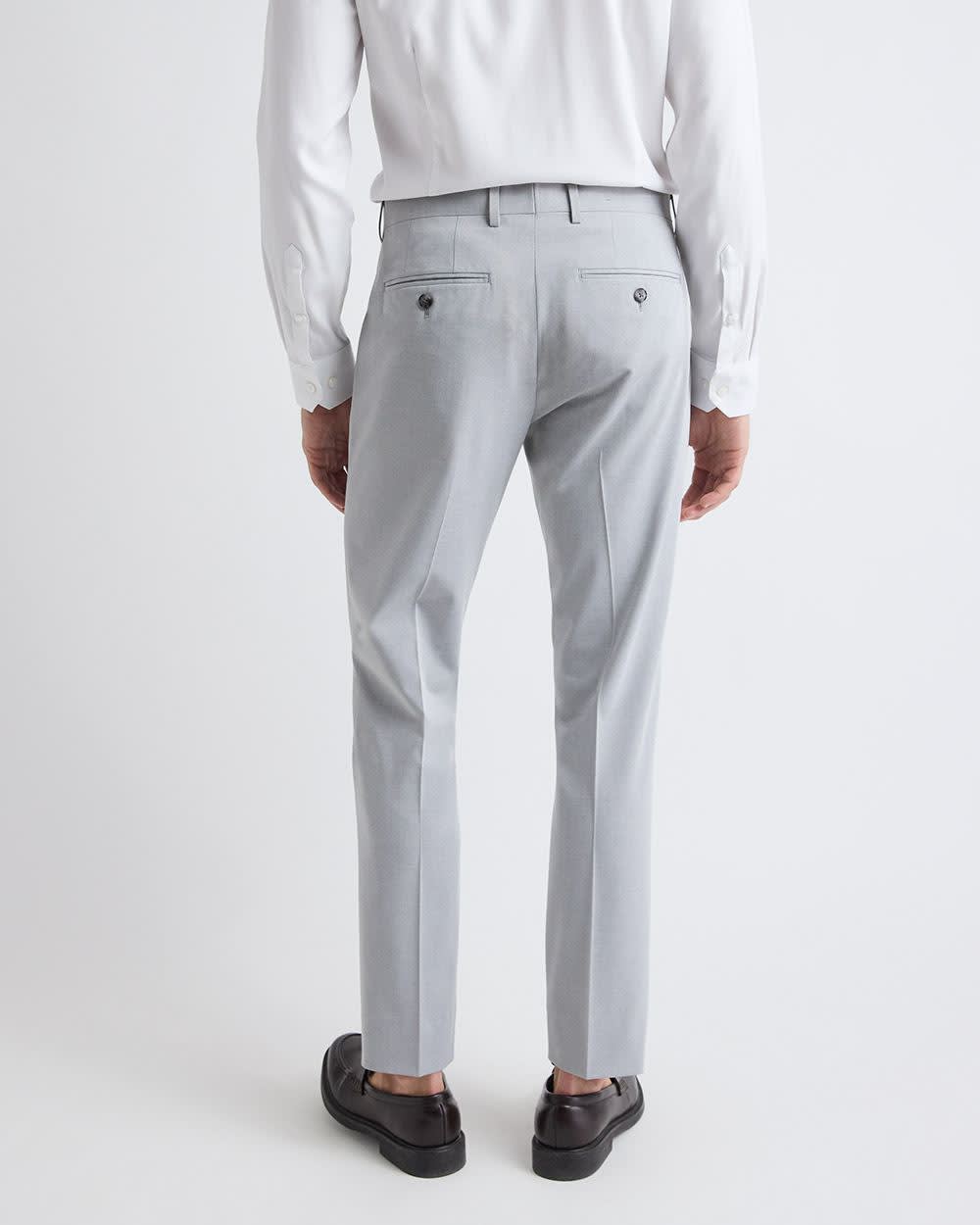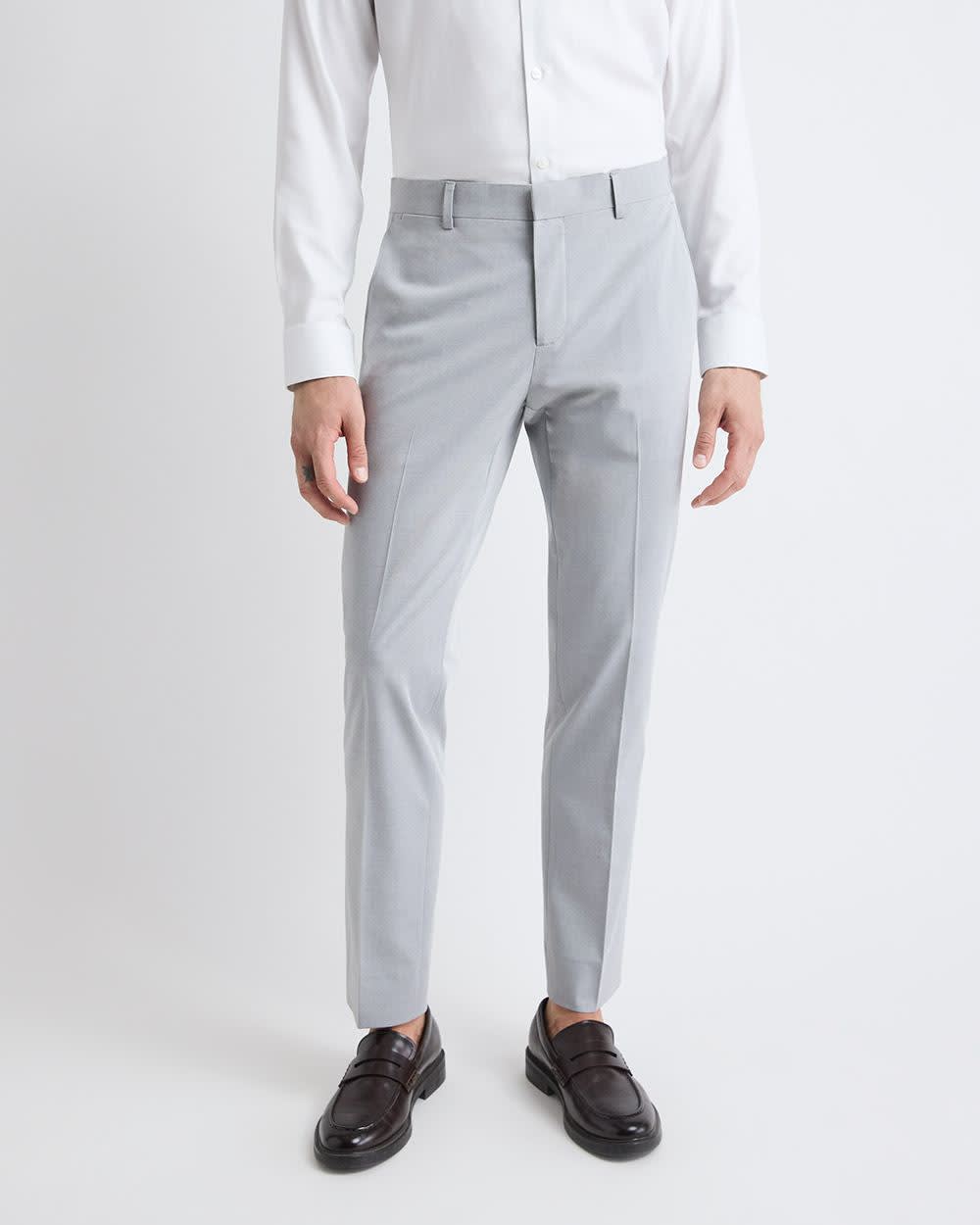 Confort absolu et élégance sophistiquée, c'est ce que vous obtenez avec ce pantalon à coupe étroite. Conçu dans une superbe teinte gris pâle, ce pantalon saura assurément rehausser votre style. Veston assorti disponible.