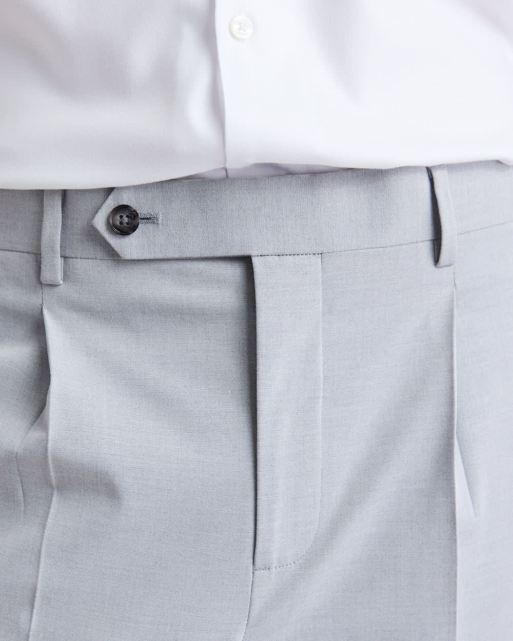 Confort absolu et élégance sophistiquée, c'est ce que vous obtenez avec ce pantalon à coupe décontractée. Conçu dans une superbe teinte gris pâle, ce pantalon saura assurément rehausser votre style. Veston assorti disponible.