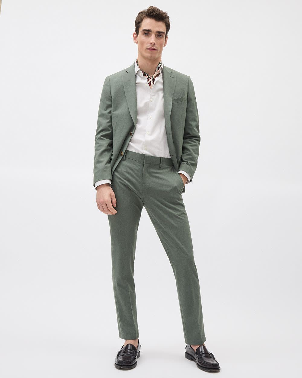 Conçu dans une superbe teinte verte parfaite pour la saison chaude, vous saurez vous démarquer avec cet élégant pantalon à coupe étroite fabriqué dans un tissu extensible pour un confort longue durée. Veston assorti disponible.