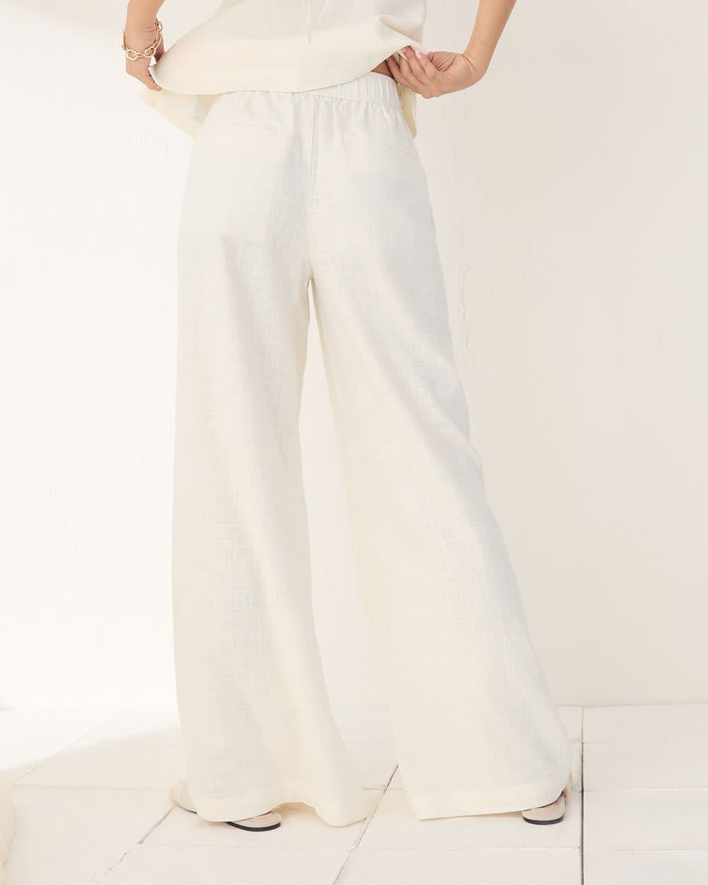 Vous adorerez ce superbe pantalon en lin à jambe large. Portez-le avec une sandale à talons pour un style sophistiqué unique ou avec une paire d'espadrilles au quotidien.
