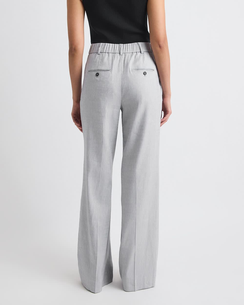 Ce pantalon gris taille haute doté d'une jambe large tendance et conçu dans un mélange de lin léger et confortable est assurément un essentiel cette saison pour rehausser votre style de tous les jours. Veston assorti disponible.
