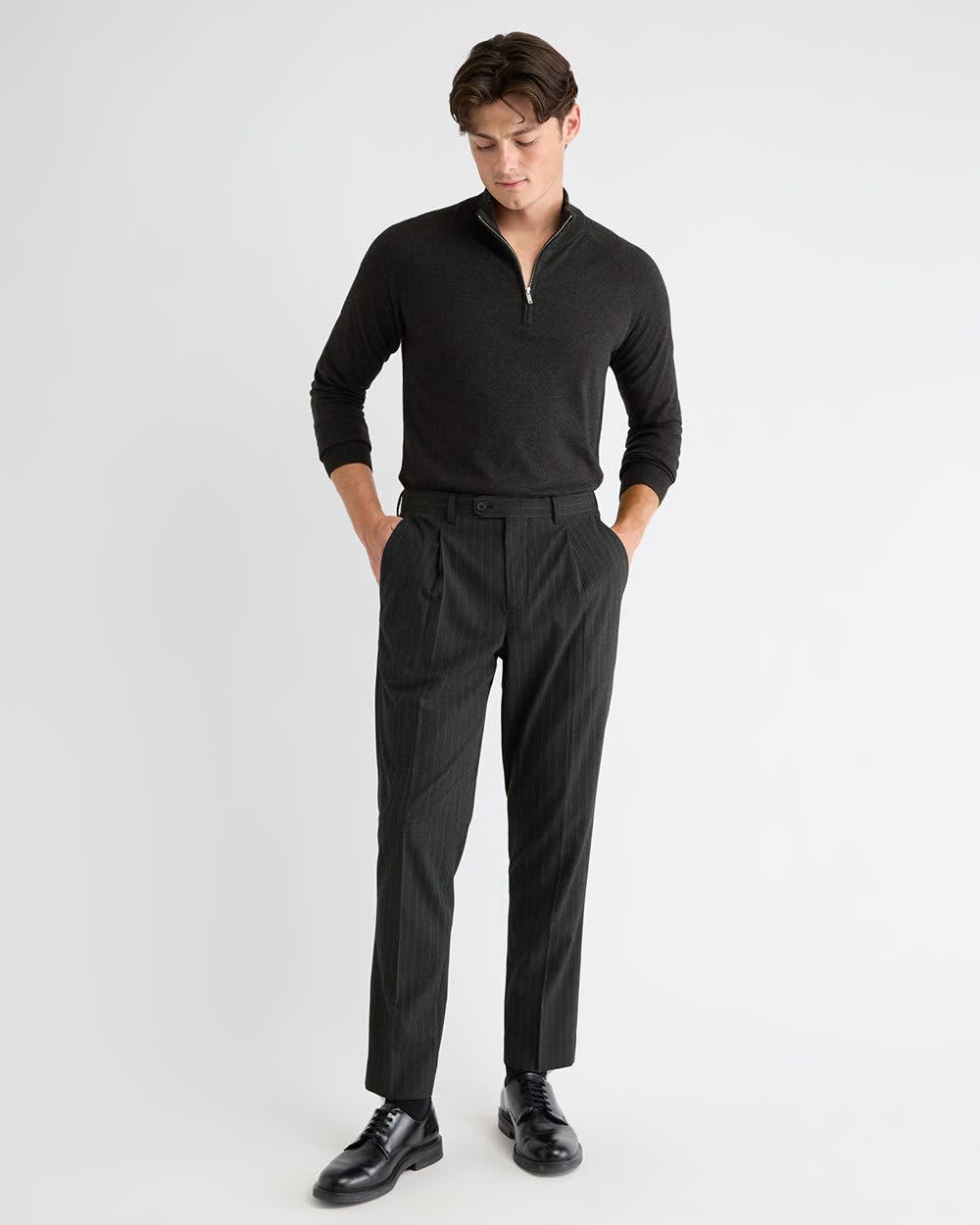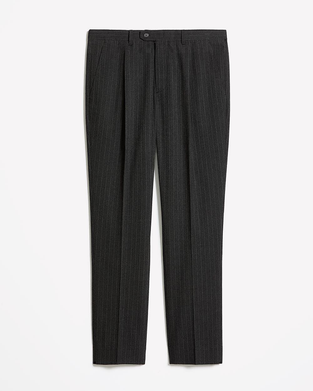 Offert dans une élégante teinte gris foncé et décoré d'un discret motif à rayures, ce pantalon habillé à jambe fuselée s'agence parfaitement autant avec une chemise habillée qu'avec un pull décontracté. Une pièce polyvalente parfaite pour toutes les occasions.