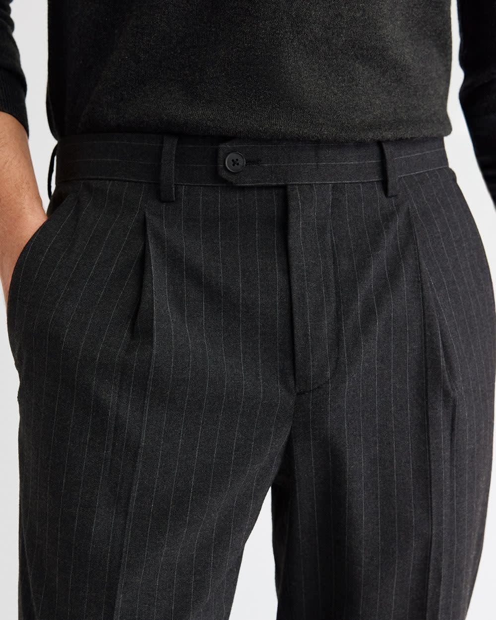 Pantalon Habillé Rayé à Jambe Fuselée Plissée