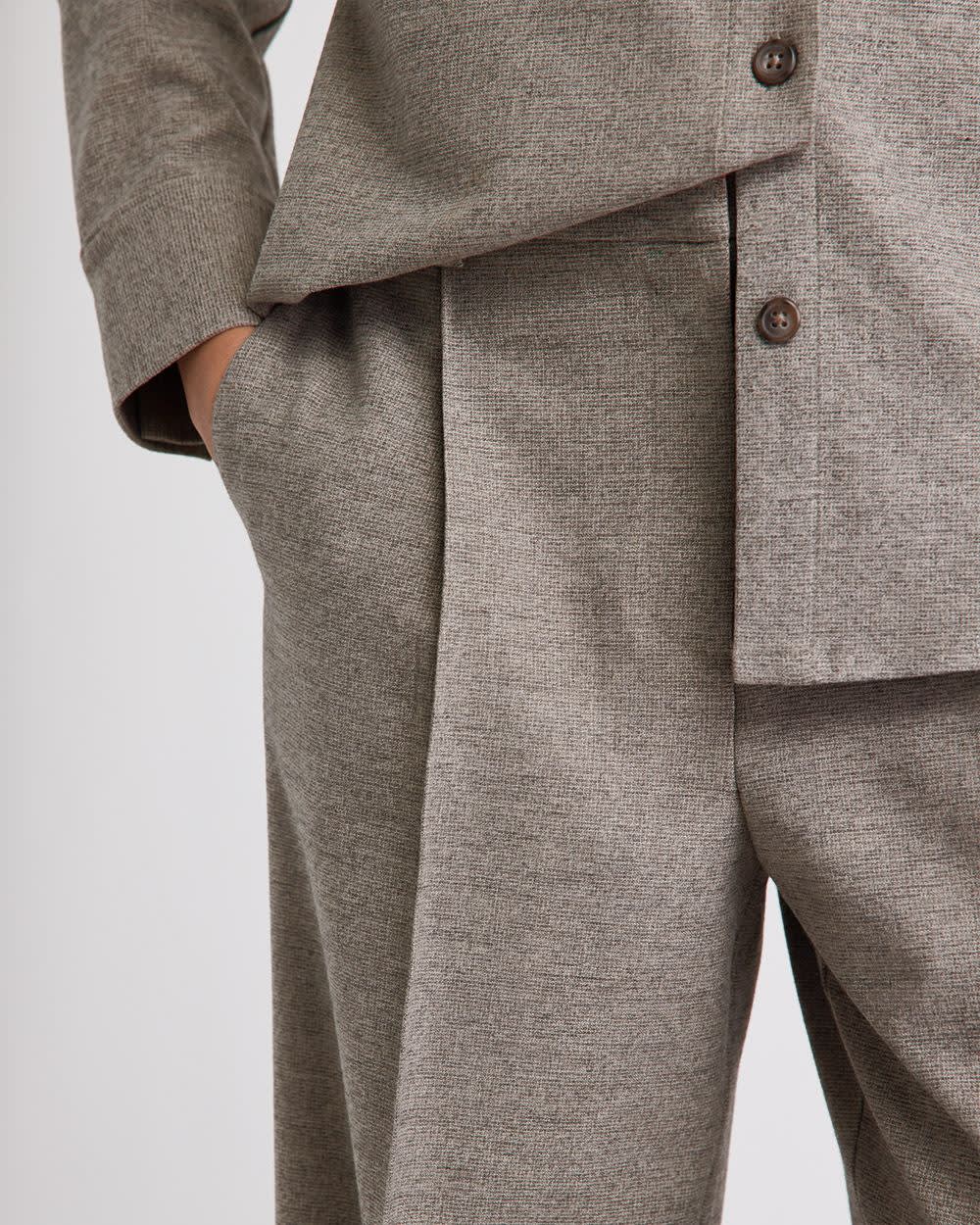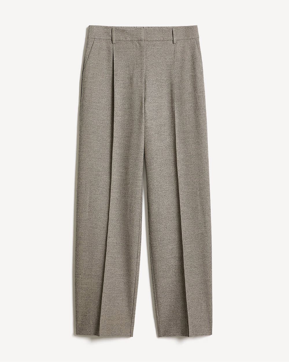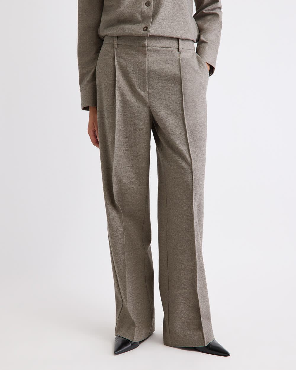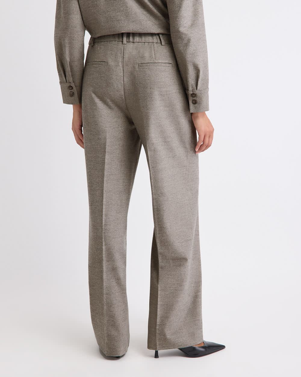 Conçu dans un somptueux tricot taupe, ce pantalon à taille haute doté d'une jambe large et d'une taille élastique au dos vous assure élégance, style et confort. Une pièce essentielle à ajouter à votre garde-robe professionnelle.
