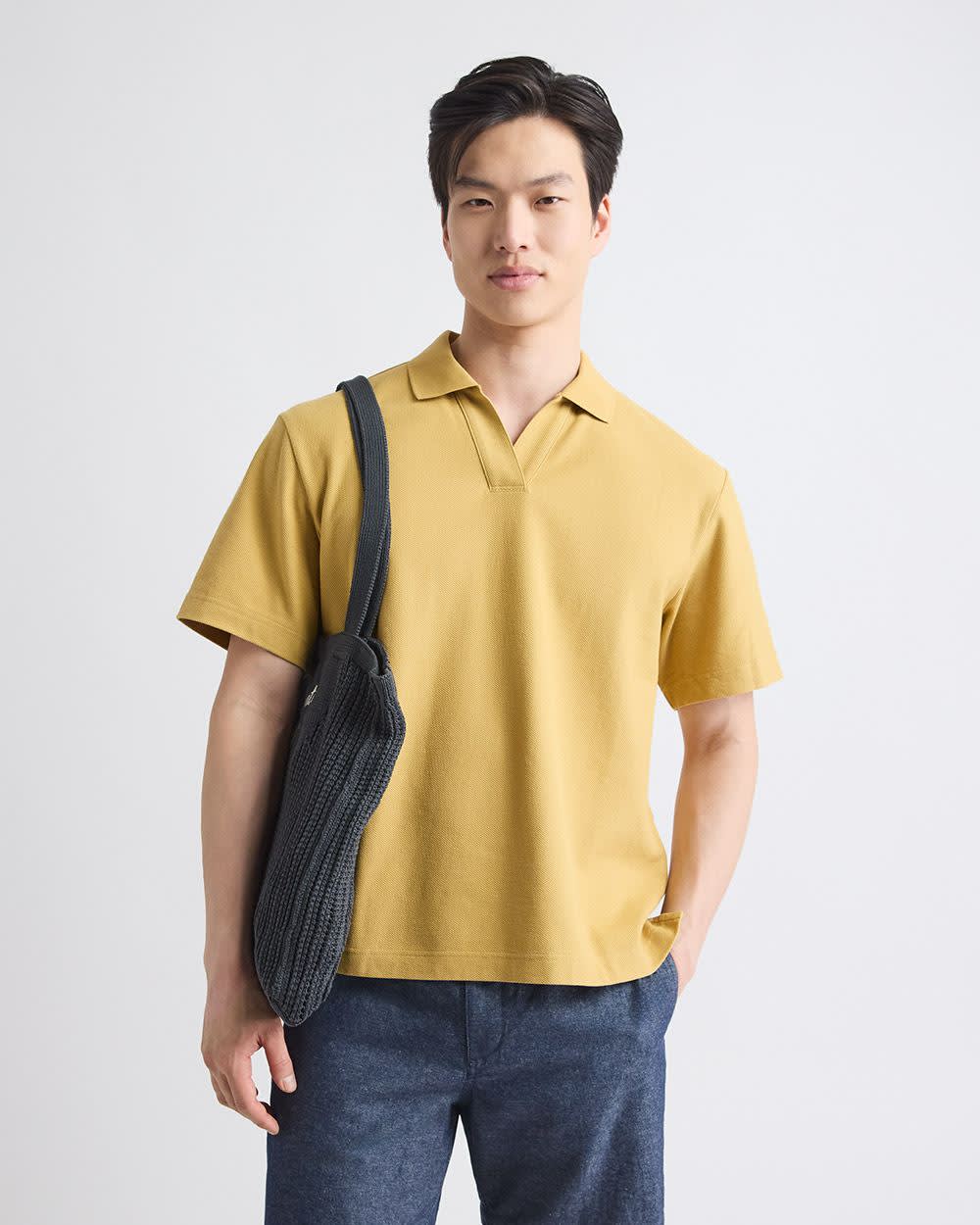 Fabriqué dans un confortable jacquard texturé et conçu dans une coupe ample, ce polo à manches courtes est une superbe pièce à ajouter à votre garde-robe.