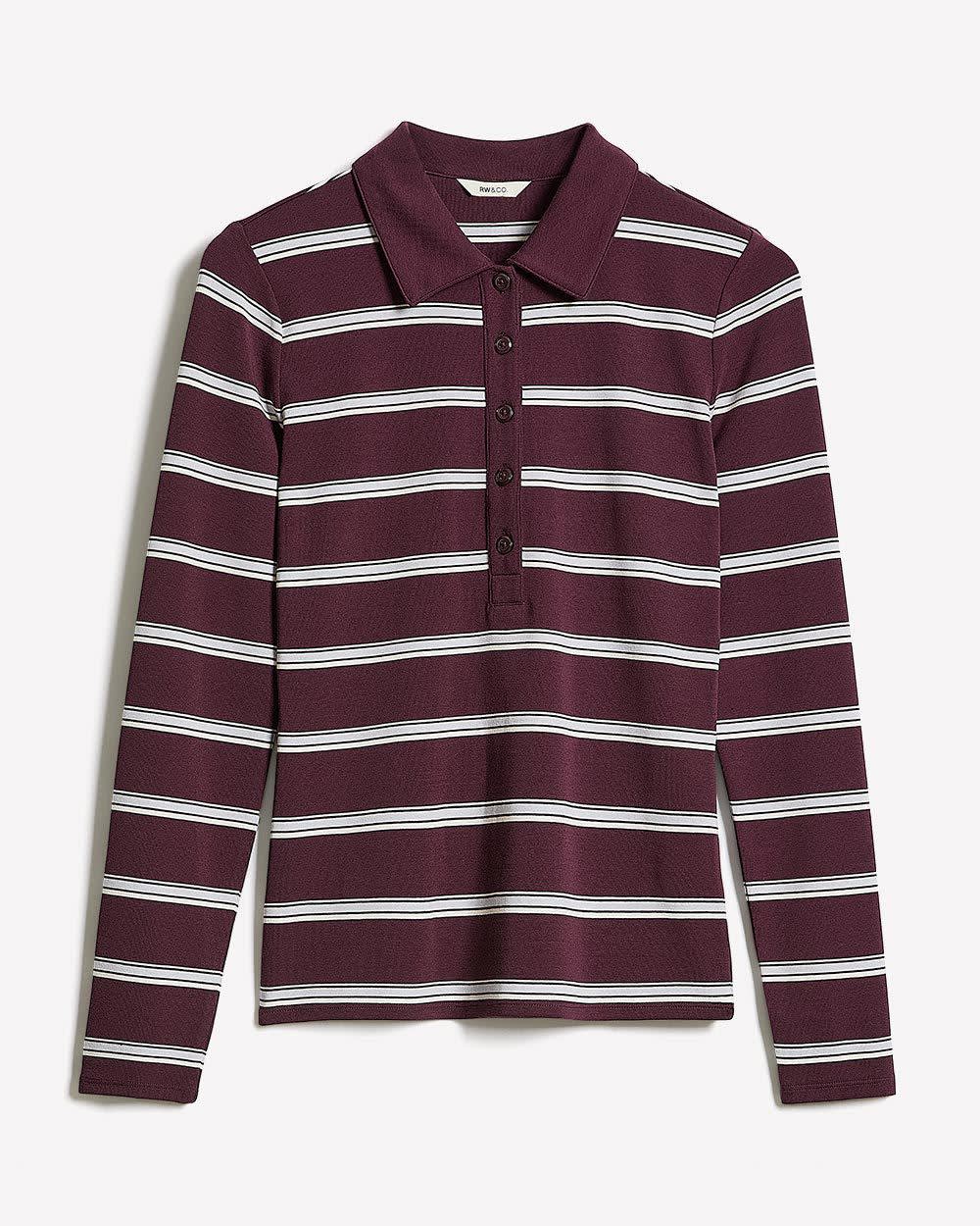 Polo Rayé à Manches Longues en Tricot Luxueux