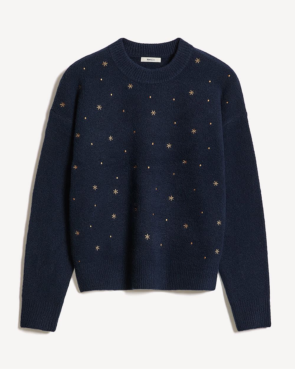 Décoré d'un adorable motif brodé, ce pull à col rond conçu dans un tricot ultra-doux vous procurera un confort optimal et un style joliment féminin.