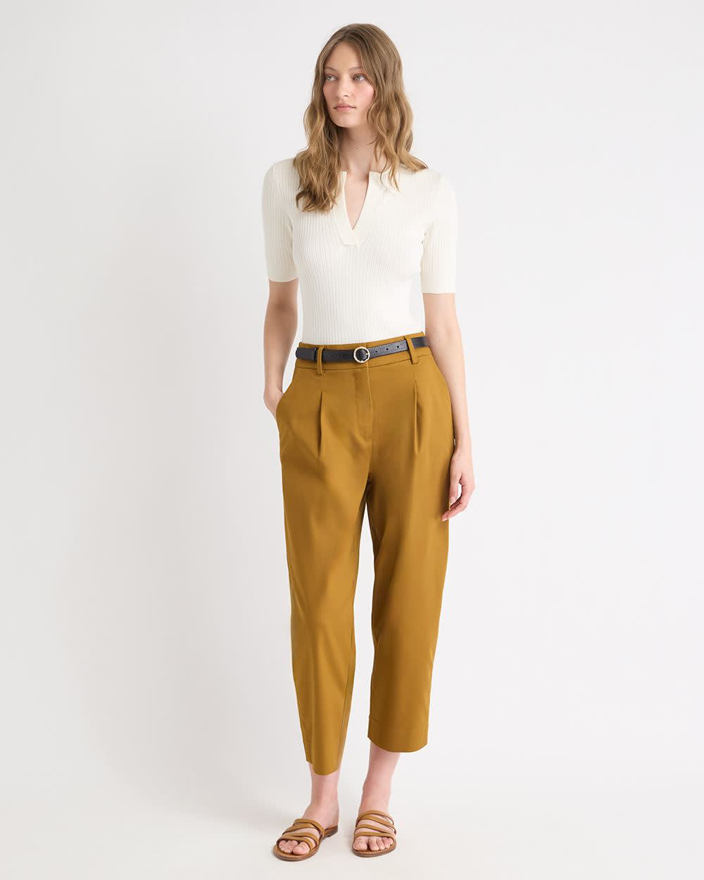 Ce pull côtelé moulant doté d'une encolure fendue et de manches aux coudes est une pièce polyvalente, idéale cet été. Portez-le au bureau avec une paire de pantalons propres, ou avec une paire de jeans le week-end pour un look plus décontracté.