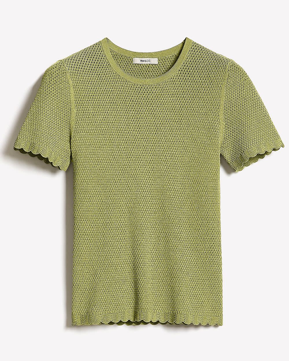 Conçu dans un superbe tricot texturé et doté d'un adorable ourlet ondulé, ce pull à manches courtes est à la fois féminin et élégant, parfait pour toutes sortes d'événements cet été.