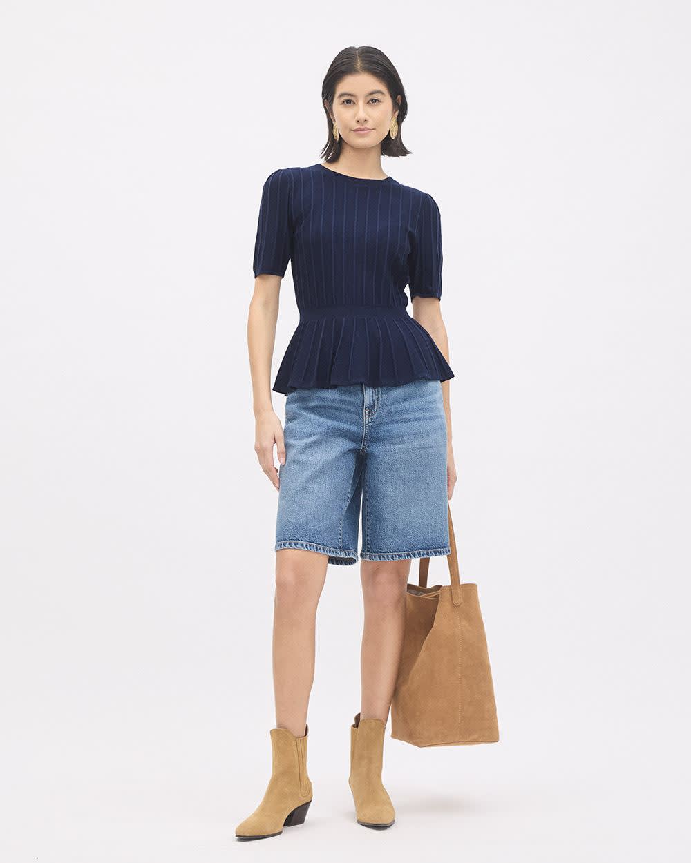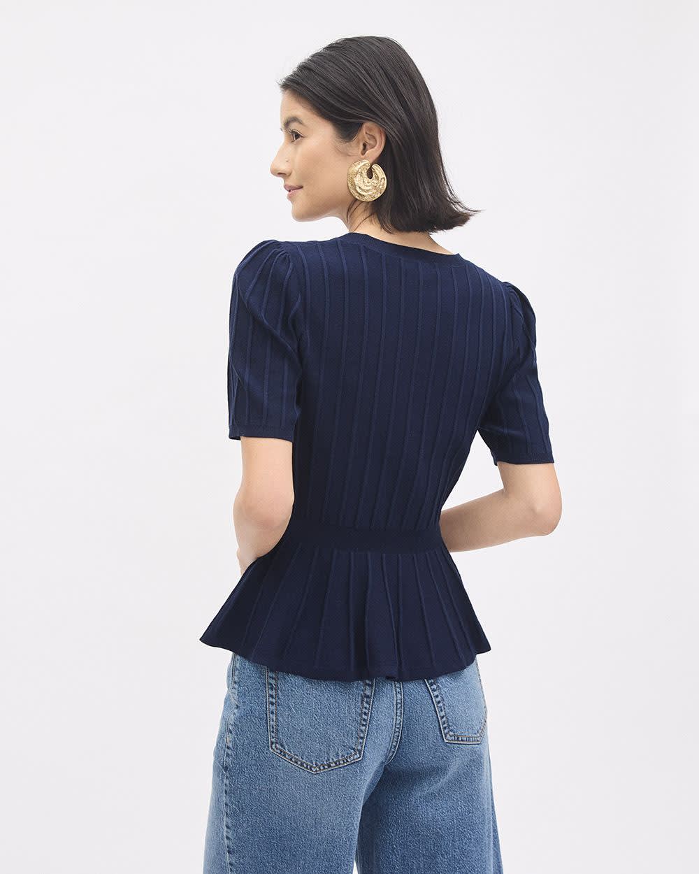 Ce joli pull péplum conçu avec de tendances manches aux coudes complétera à la perfection n'importe quelle tenue. Une pièce élégance qui saura rehausser votre style.