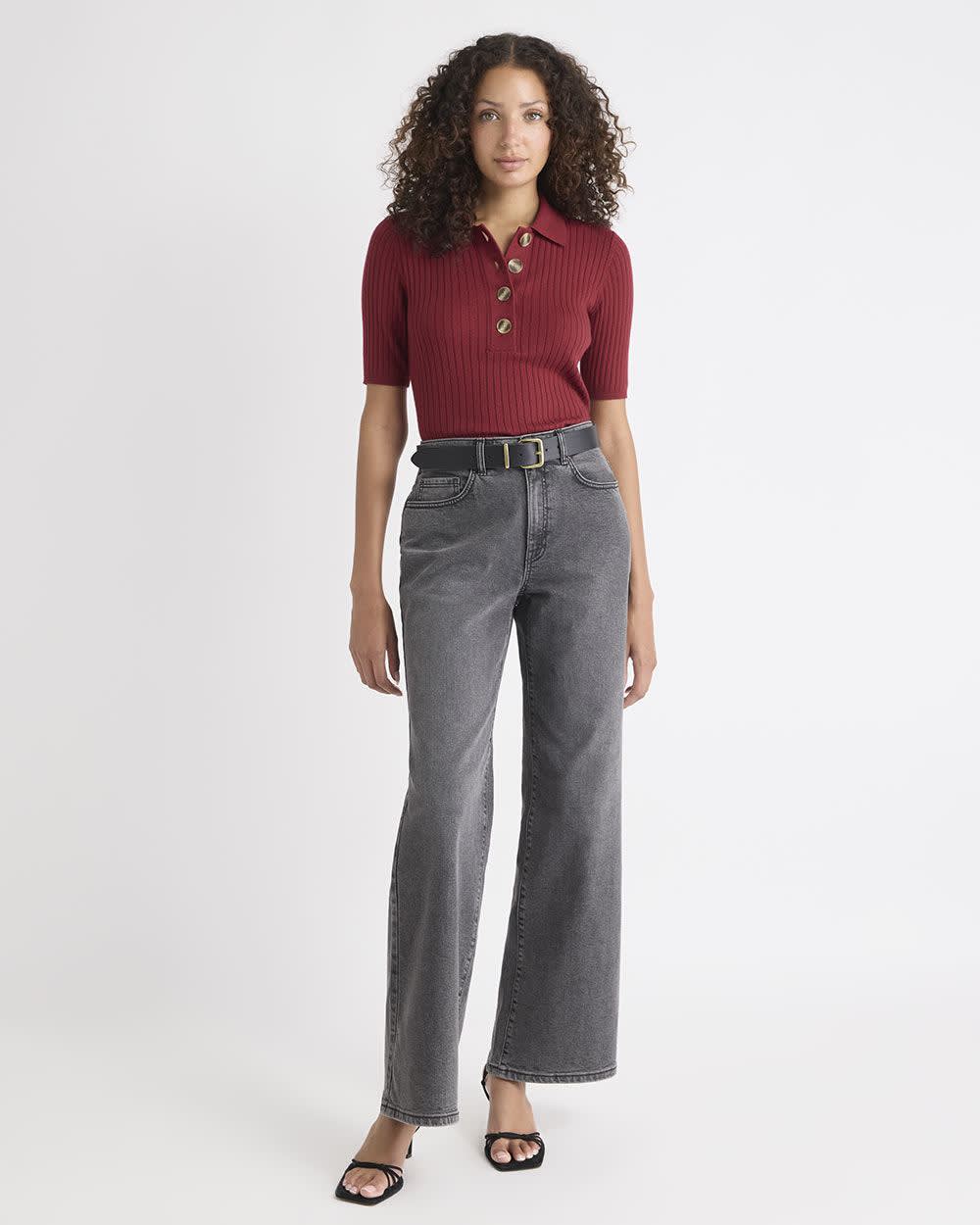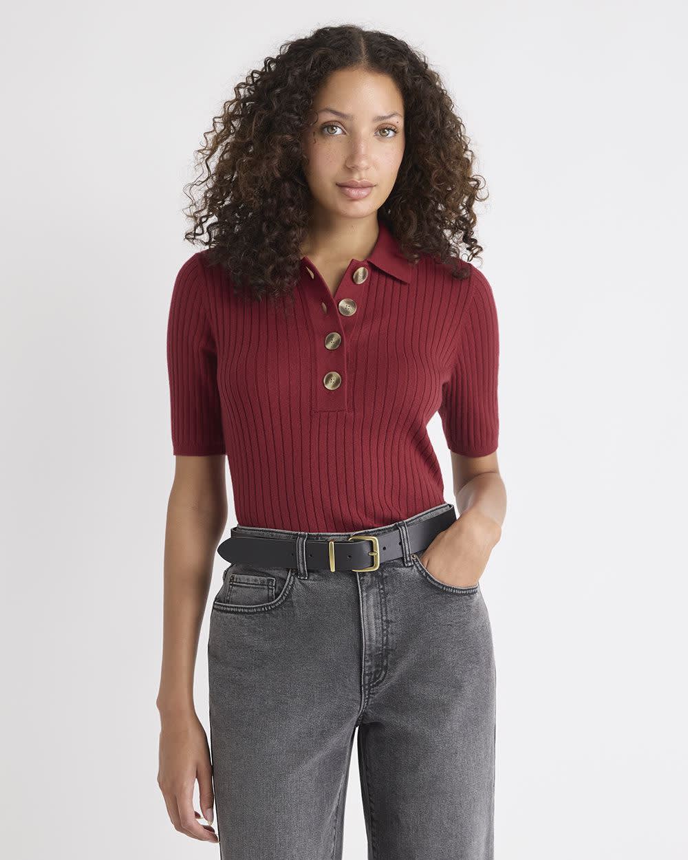 Ce pull côtelé doté d'un col fendu et de manches aux coudes est une pièce idéale pour un style polyvalent. Portez-le au bureau avec une paire de pantalons propres, ou avec une paire de jeans le week-end pour un look plus décontracté.