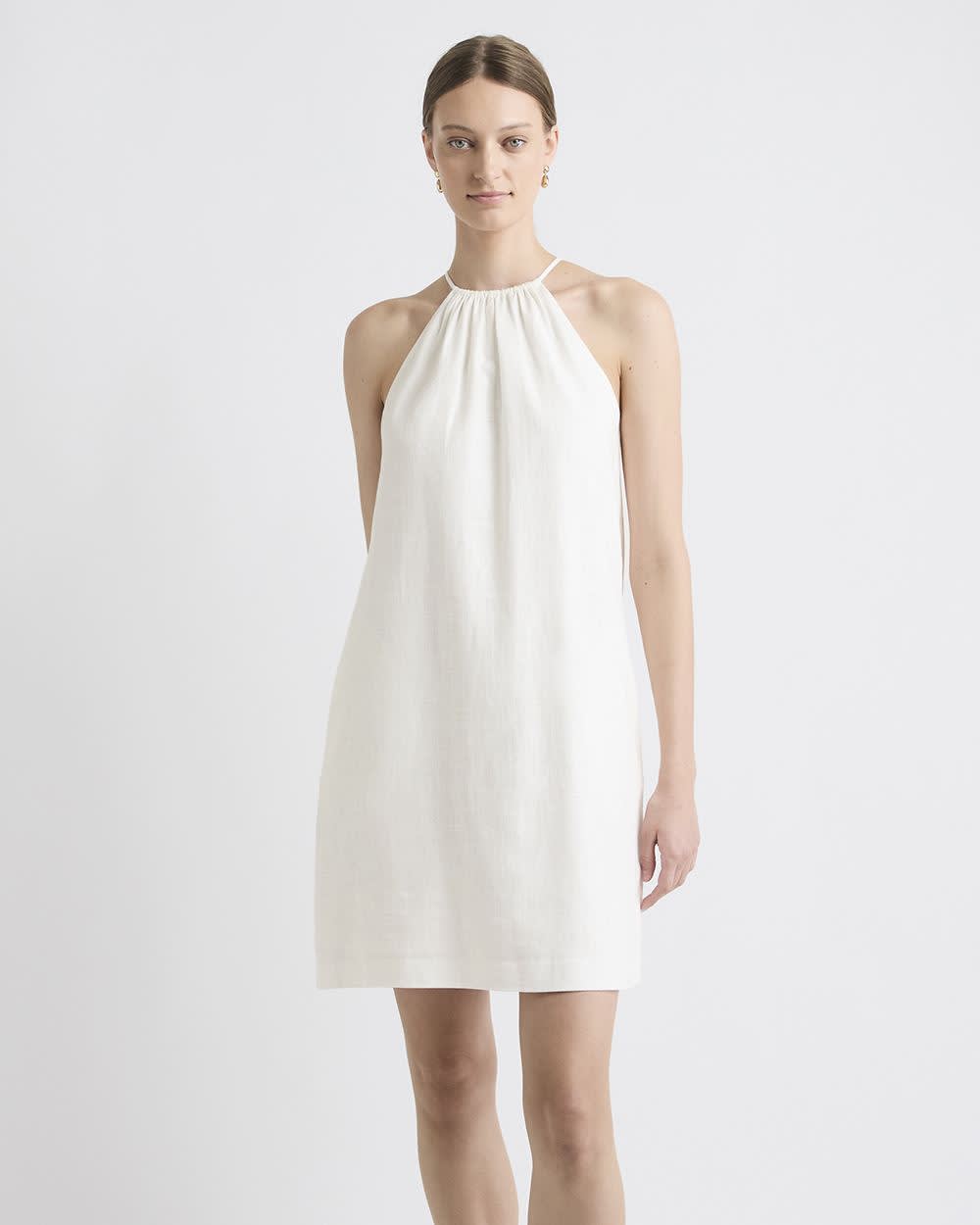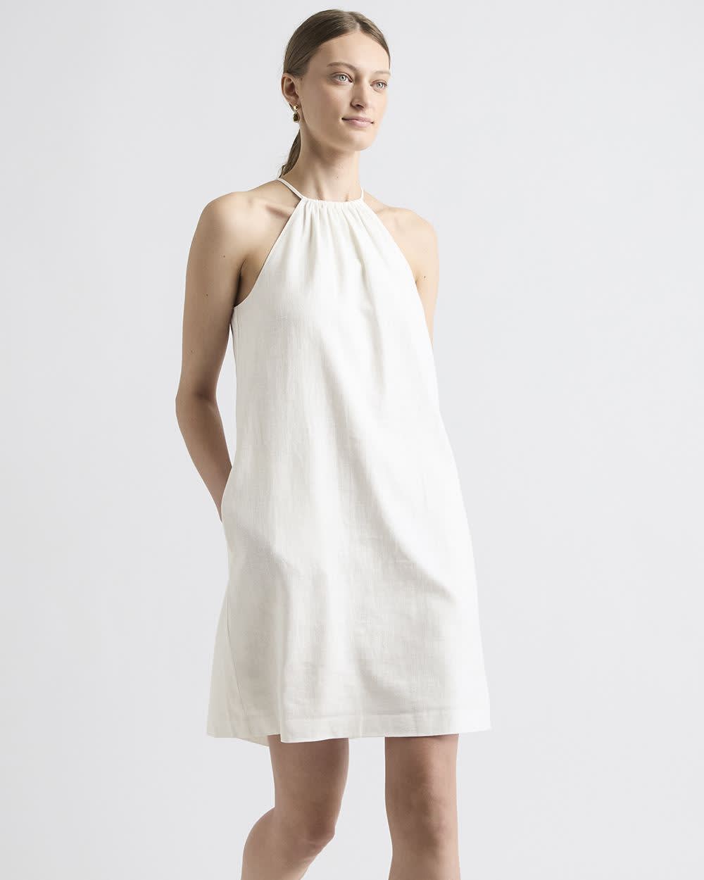 Robe Courte Sans Manches à Encolure Licou en Mélange de Lin