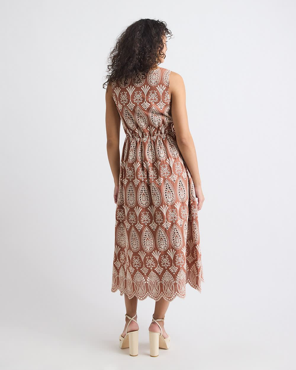 Robe Droite Maxi à Oeillets Sans Manches à Col V