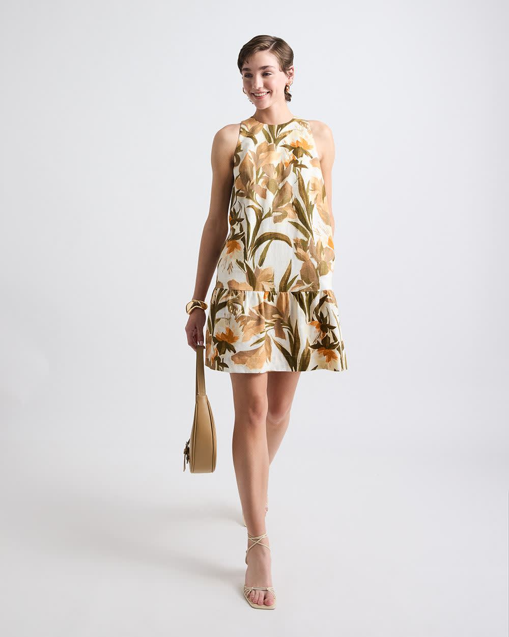 Passez en mode vacances avec style avec cette superbe robe droite sans manches dotée d'un col rond et conçue dans un confortable et léger mélange de lin, parfait pour les journées d'été les plus chaudes.