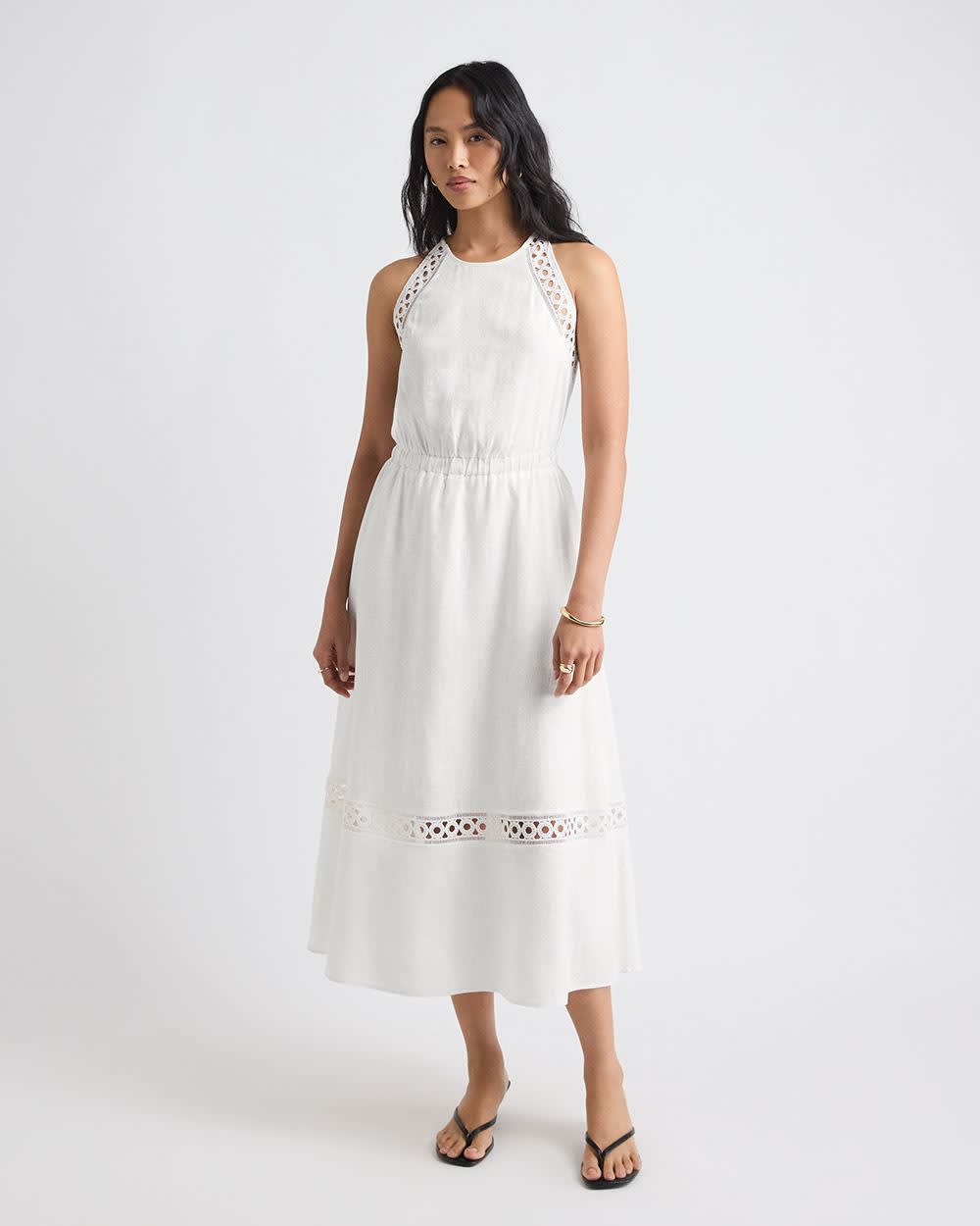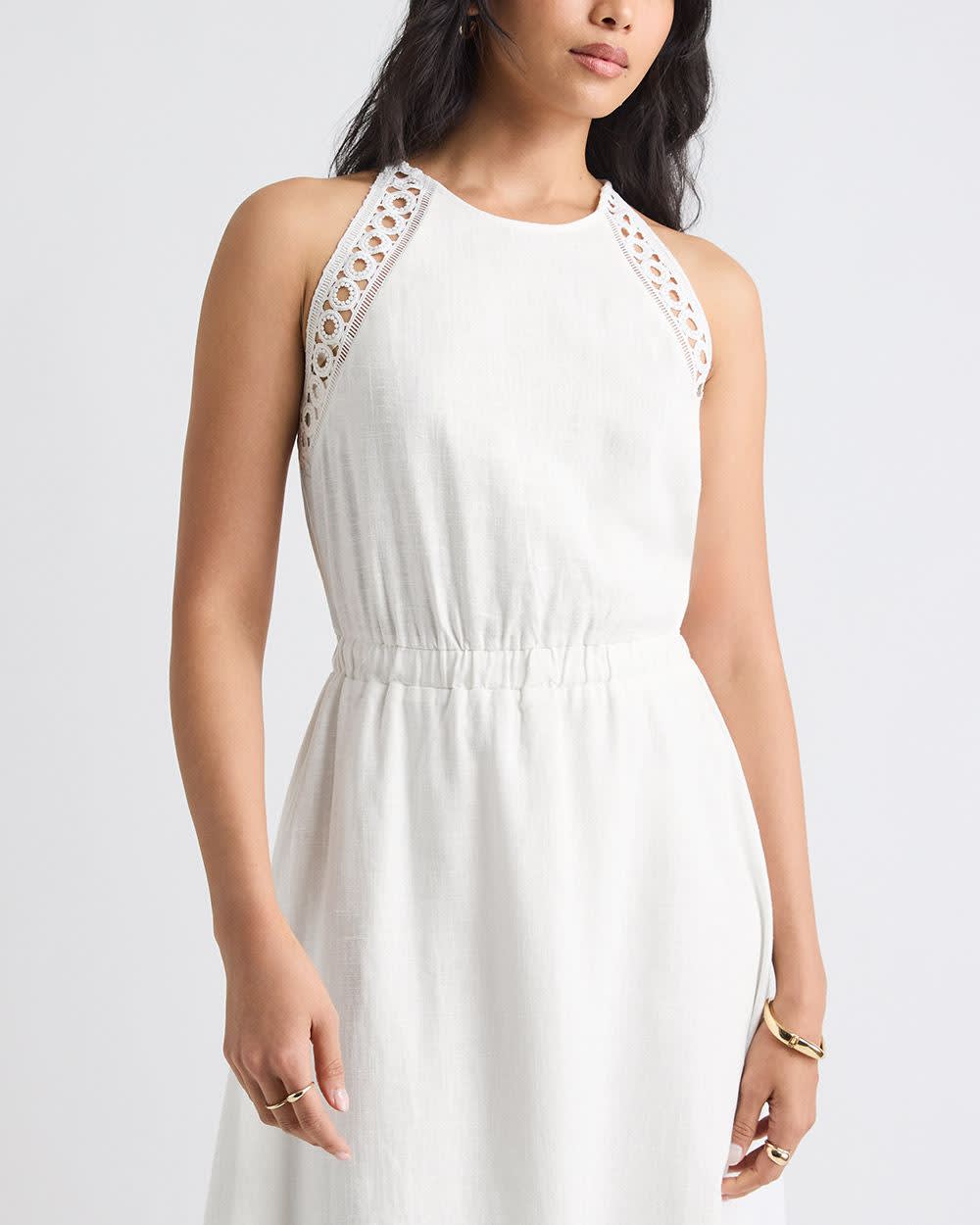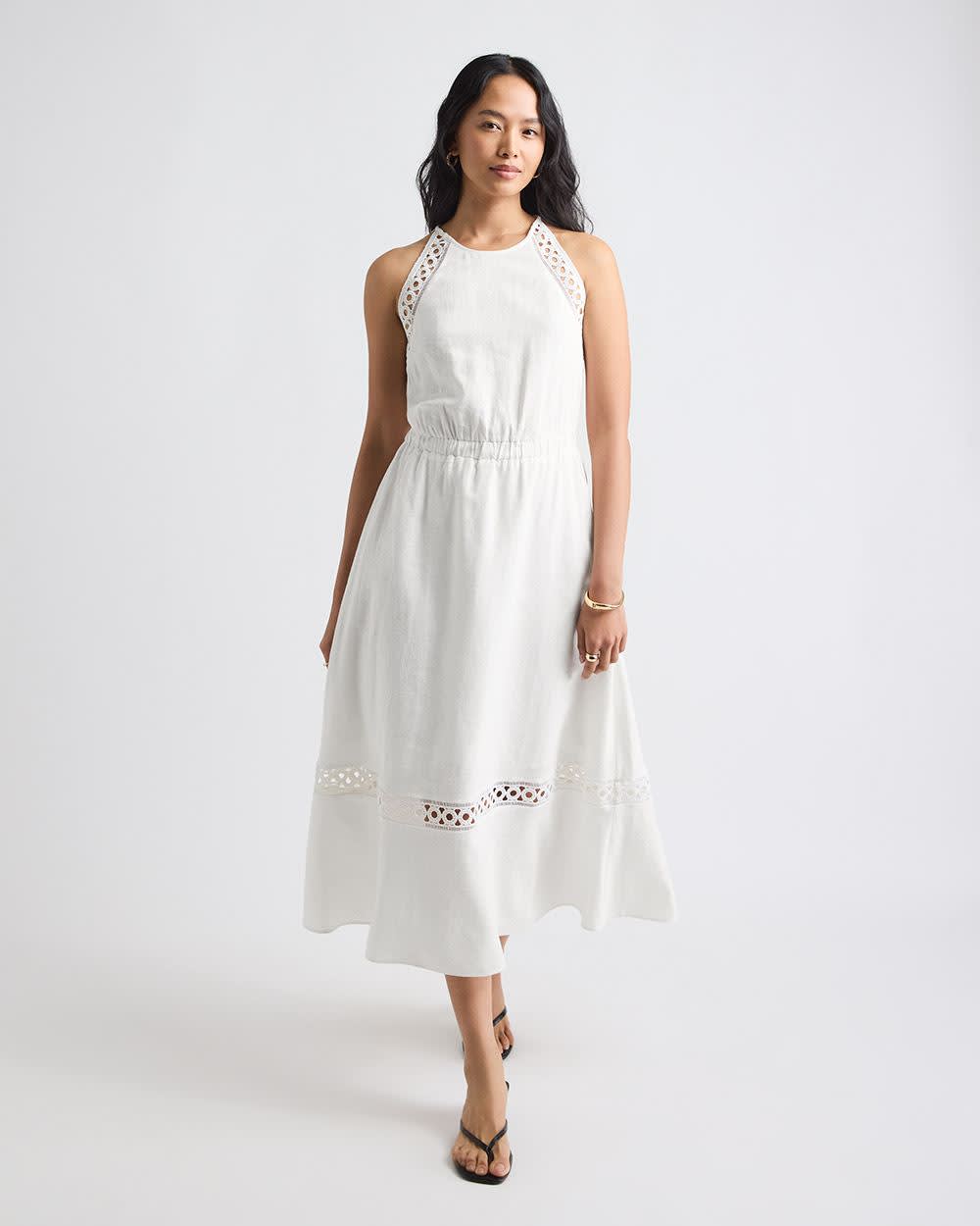 Robe Midi Sans Manches à Col Licou en Mélange de Lin