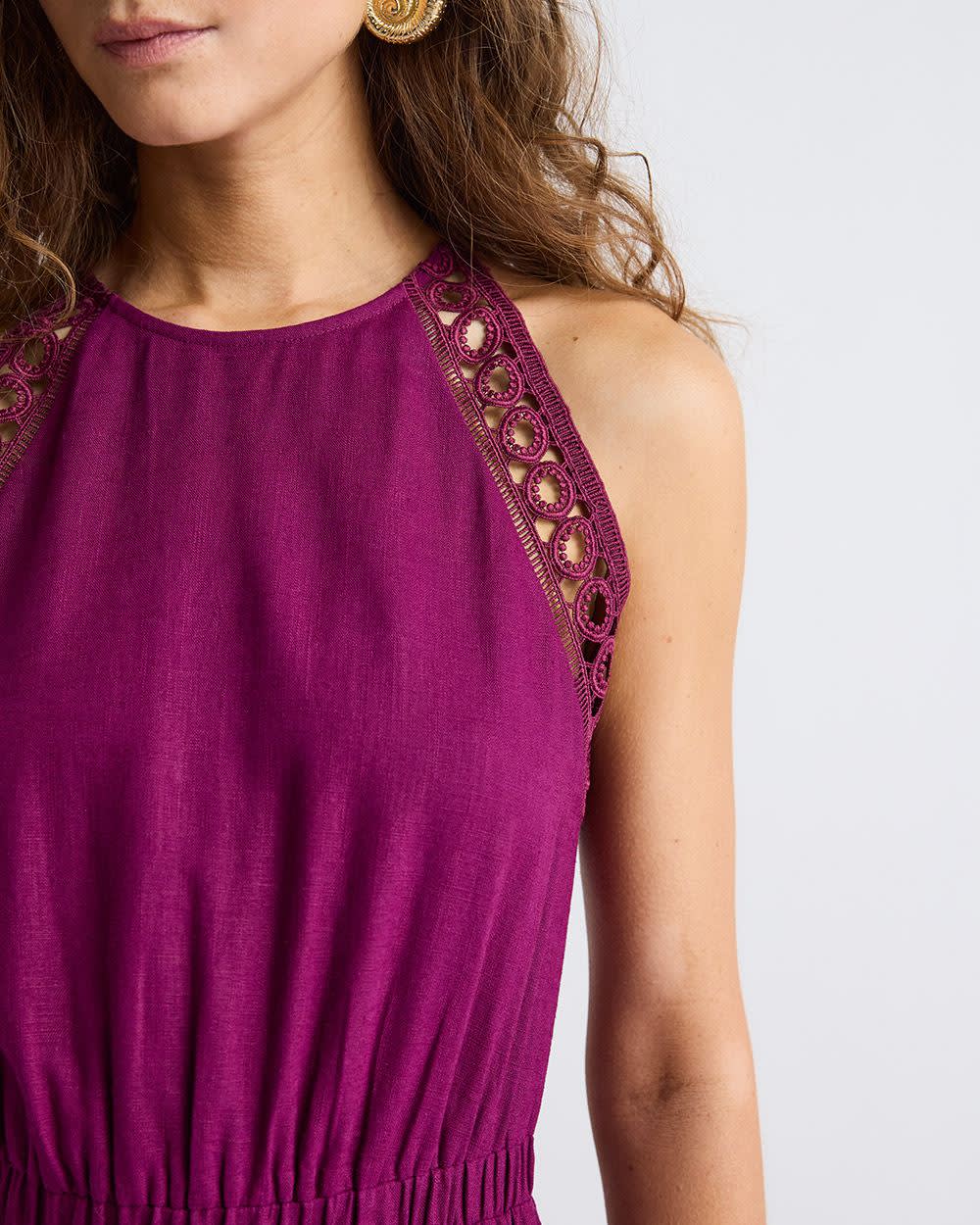 Robe Midi Sans Manches à Col Licou en Mélange de Lin
