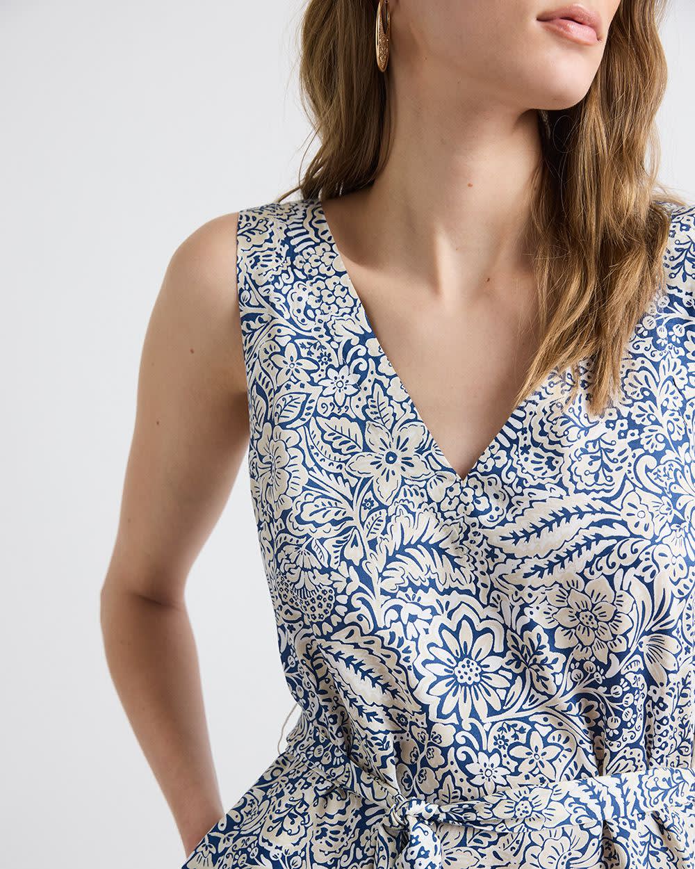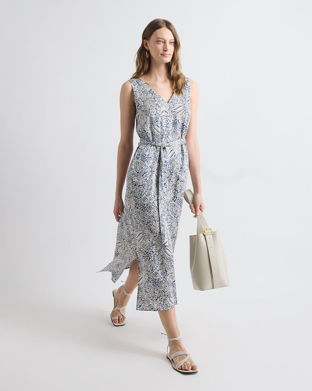Super tendance, on adore le léger tissu satiné de cette robe midi sans manches décorée d'un superbe imprimé. Conçue avec une ceinture amovible afin que vous puissiez choisir de la porter avec ou sans, pour un style qui est uniquement vôtre.