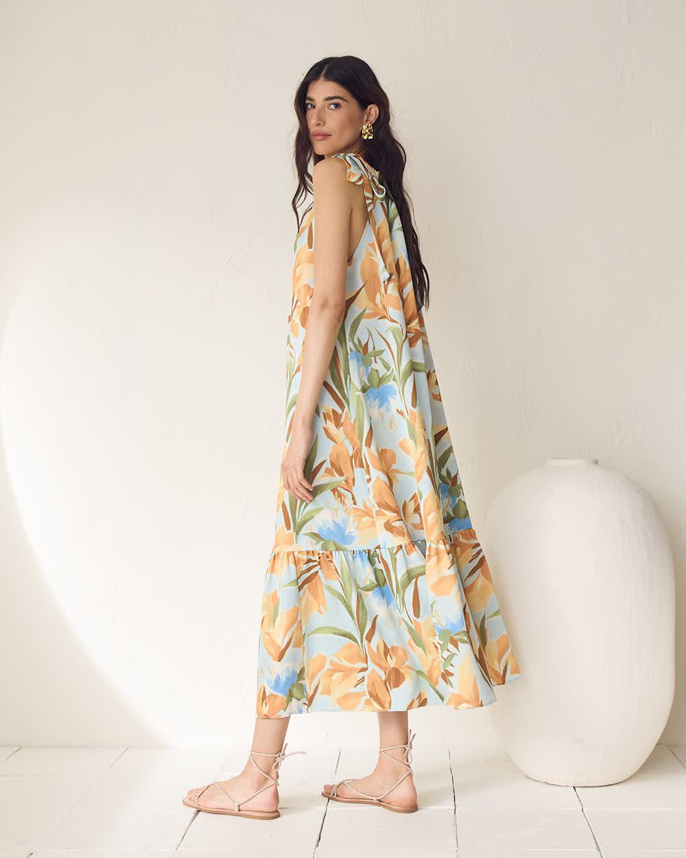 Magnifique, cette robe sans manches à encolure licou est idéale pour une tenue facile tendance de jour comme de nuit. Un essentiel pour vos prochaines vacances au soleil.