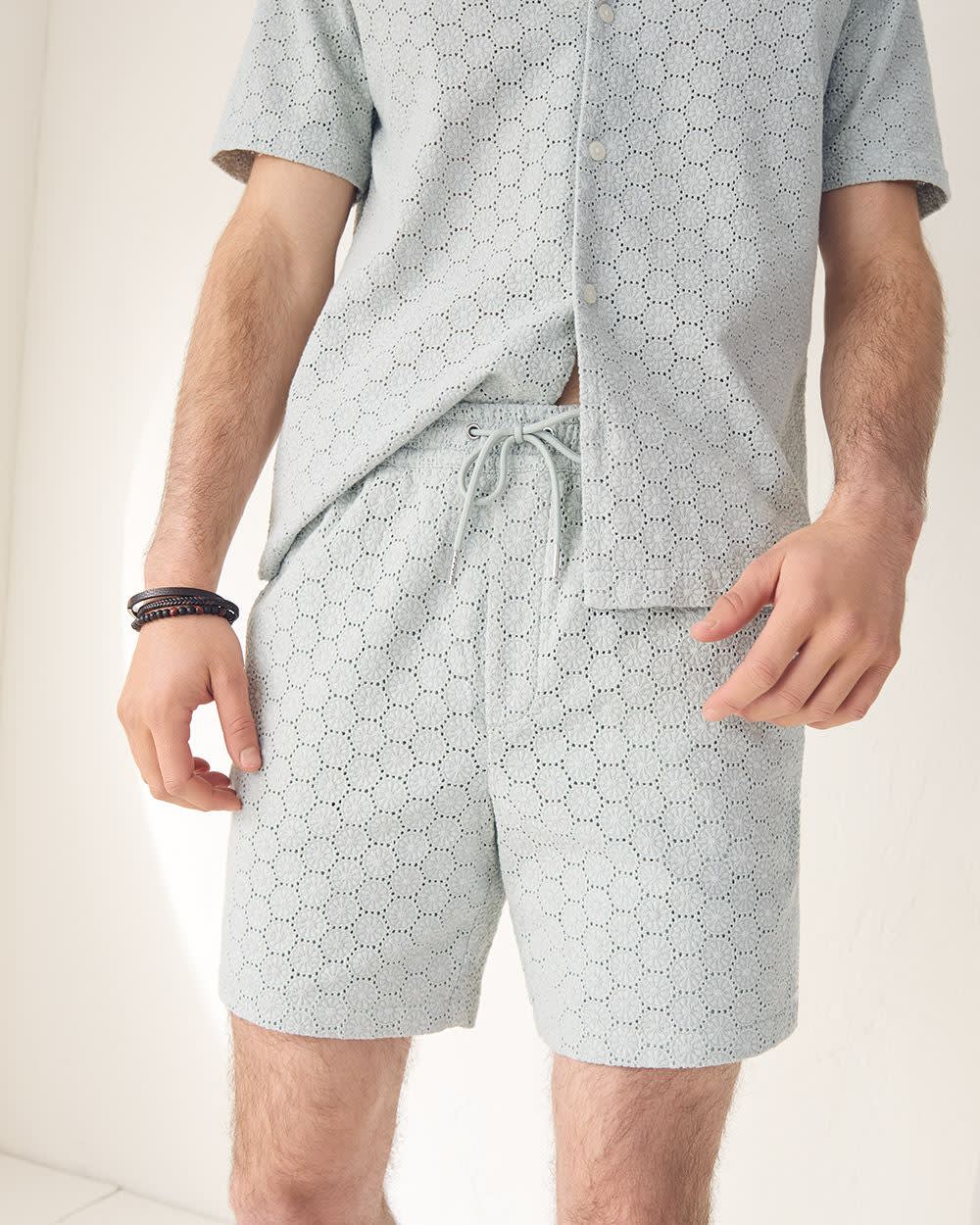 Décorés d'uniques détails brodés, ces shorts à taille élastique sont une pièce essentielle si vous désirez vous faire remarquer lors de vos prochaines vacances au soleil.