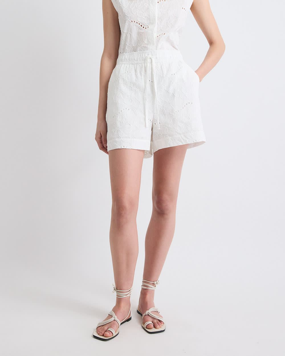 Rien ne fait plus vacances ensoleillées qu'une jolie paire de shorts à détails brodés. Avec sa taille mi-haute et son style décontracté, ce short deviendra rapidement l'un de vos favoris.