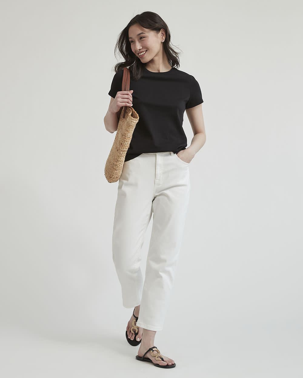 Vous ne pouvez pas vous tromper avec un t-shirt à col rond ajusté, cet essentiel de la garde-robe est une option sans souci pour créer une tenue gagnante. Grâce à son tissu en coton épais opaque et respirant, vous aurez le parfait t-shirt intemporel et structuré qui peut être porté habillé ou décontracté.