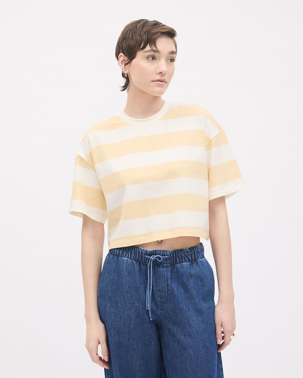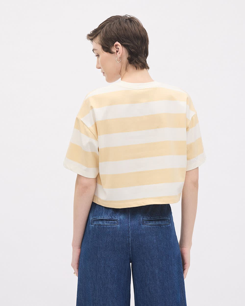Ce classique t-shirt rayé à manches courtes conçu dans une confortable coupe ample est un essentiel pour le quotidien. Conçu en coton biologique super doux au toucher, vous ne pourrez plus vous en passer.