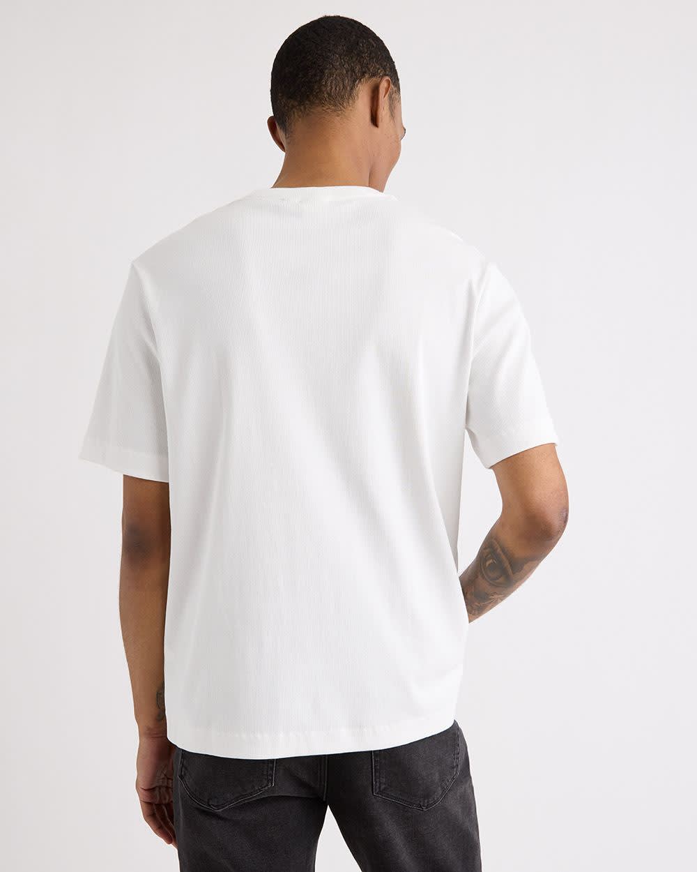 Conçu dans une polyvalente coupe classique, ce t-shirt côtelé à col rond est une pièce essentielle à ajouter à votre garde-robe.