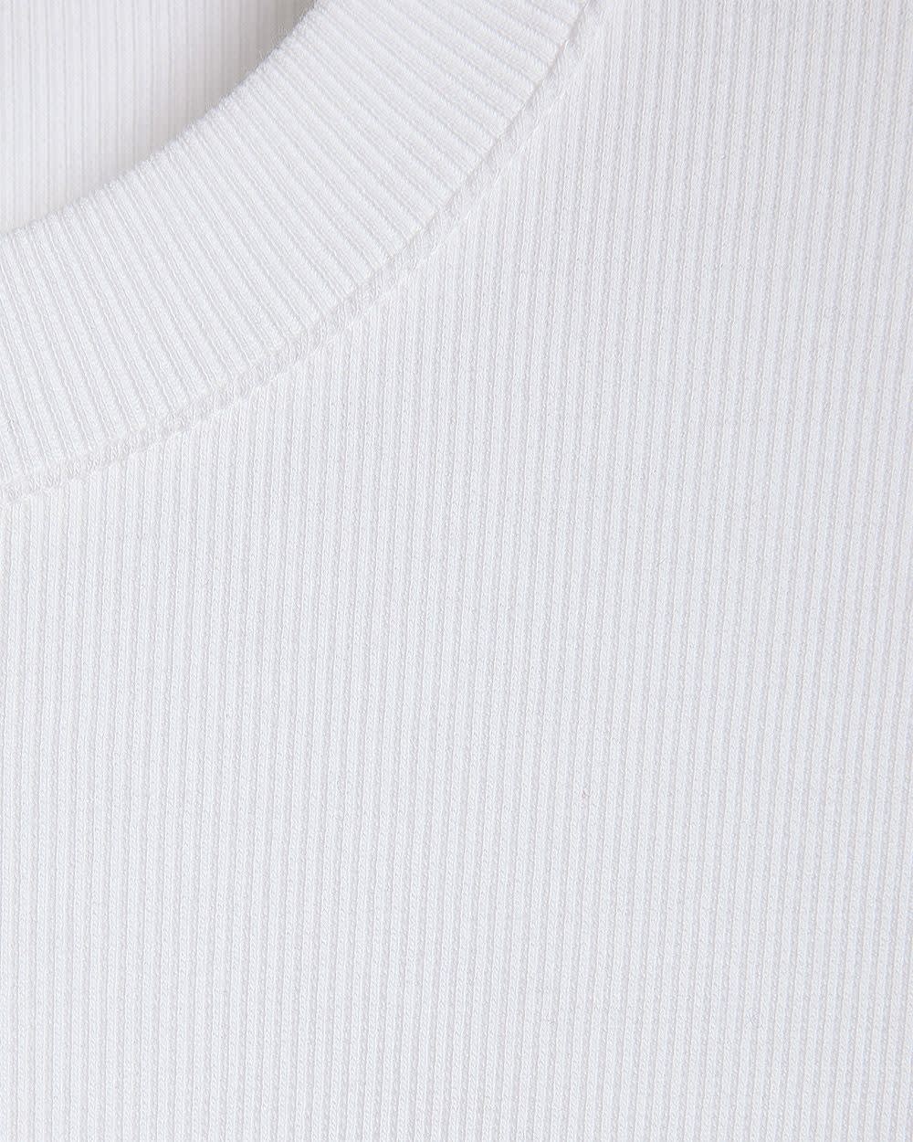 T-Shirt Côtelé à Manches Courtes et Col Rond