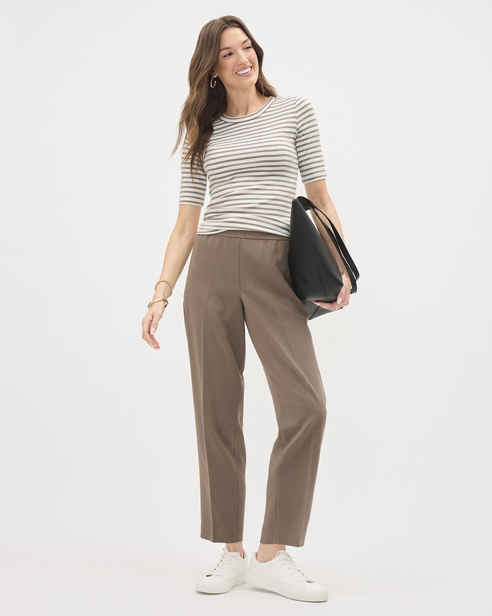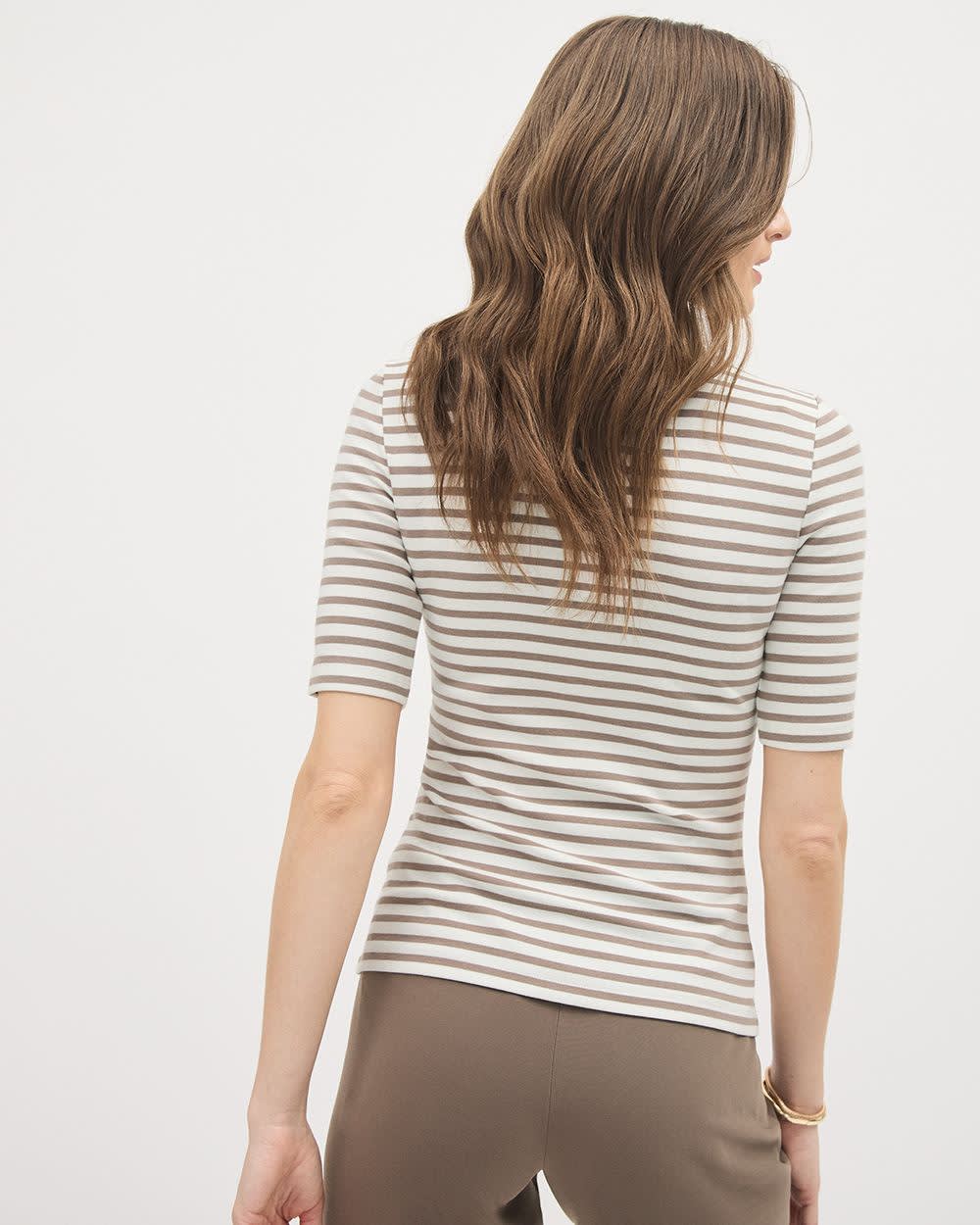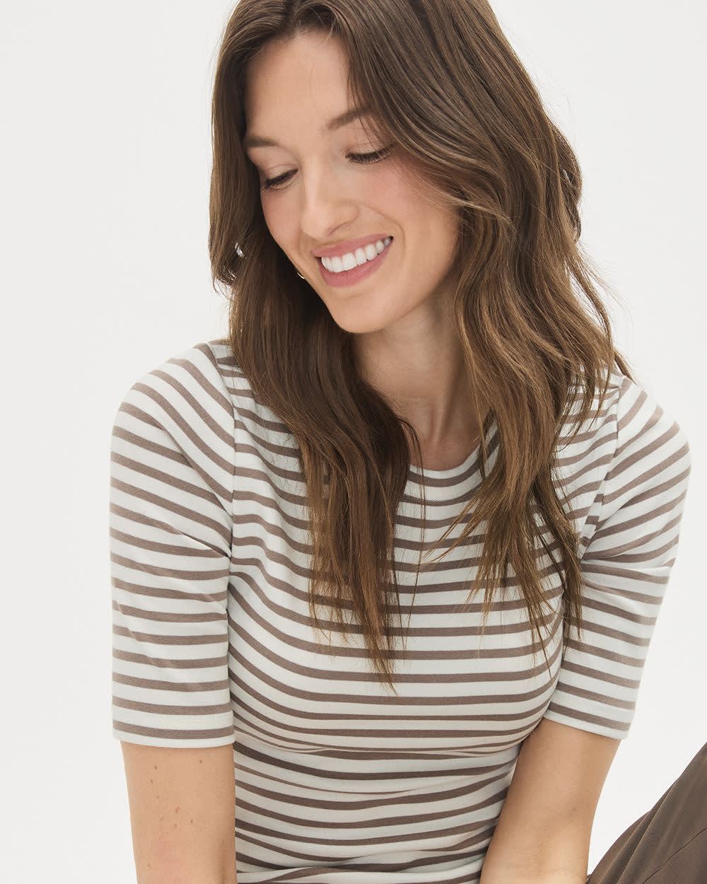Conçu dans un confortable tricot et décoré de rayures tendance, ce t-shirt à col rond doté de manches aux coudes est un essentiel à avoir dans sa garde-robe.