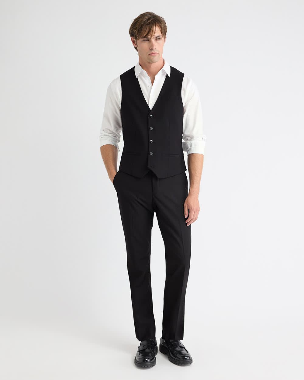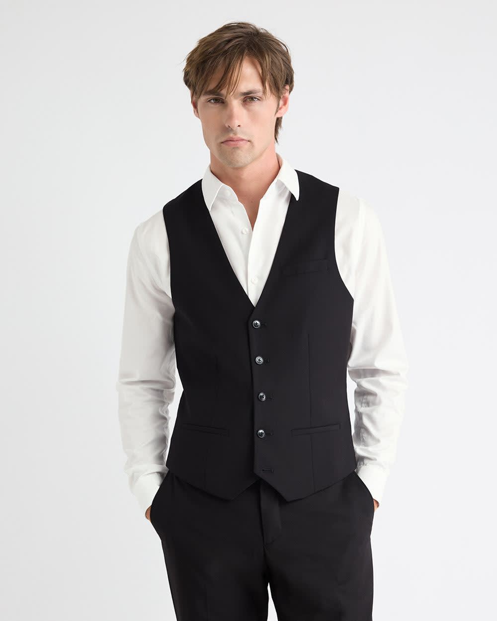 Vous vous demandez ce qui fait ressortir du lot notre Ultime Gilet Noir de Jais ? Une confection soignée, un design de qualité et une attention particulière aux détails. Agencez ce gilet au veston et au pantalon assortis pour un style intemporel ou portez-le sans veston pour un look des plus chics.